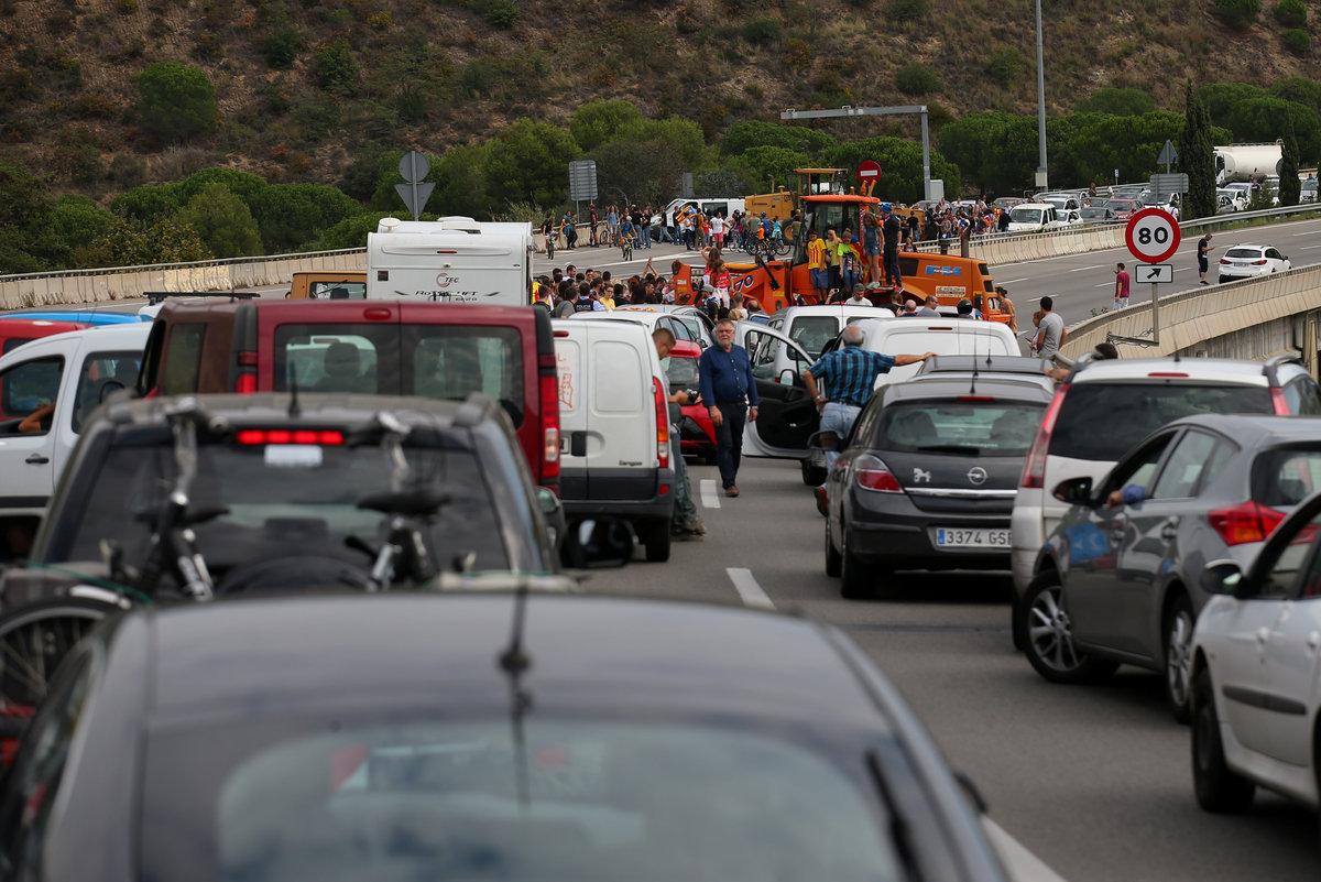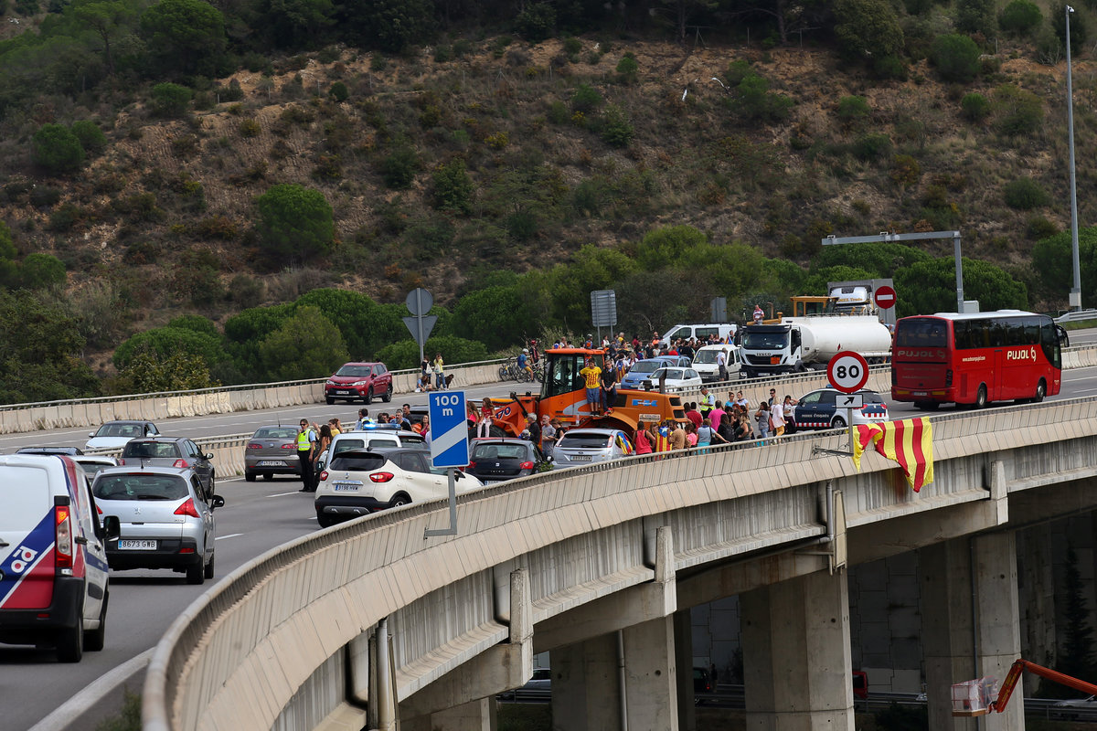 Several demonstrations unfolded across Catalonia on Tuesday. To the north of Barcelona, a line of tractors moved down a road blocked to traffic, accompanied by protesters chanting "Independence!" and "The streets will always be ours!"