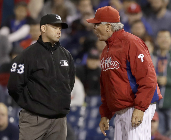 The Mets loaded the bases in the eighth with one out. Yoenis Cespedes checked his swing with two strikes, which sent Mackanin out of the dugout as it appeared that Cespedes had swung. First base umpire Will Little wasted little time ejecting the manager.