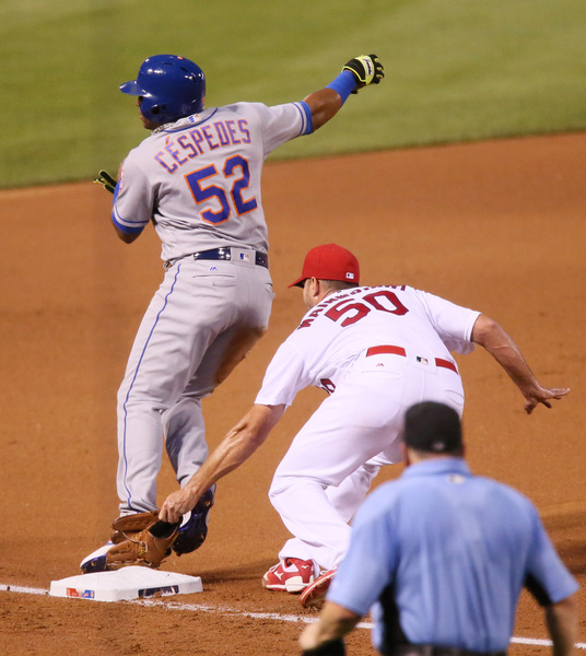 The Mets broke the game open in the fifth after Cardinals shortstop Greg Garcia booted what would have been an inning-ending grounder from Flores. That error allowed a run to score to give the Mets a 4-0 lead and De Aza followed with a three-run homer into the bullpen in right center for a 7-0 advantage.