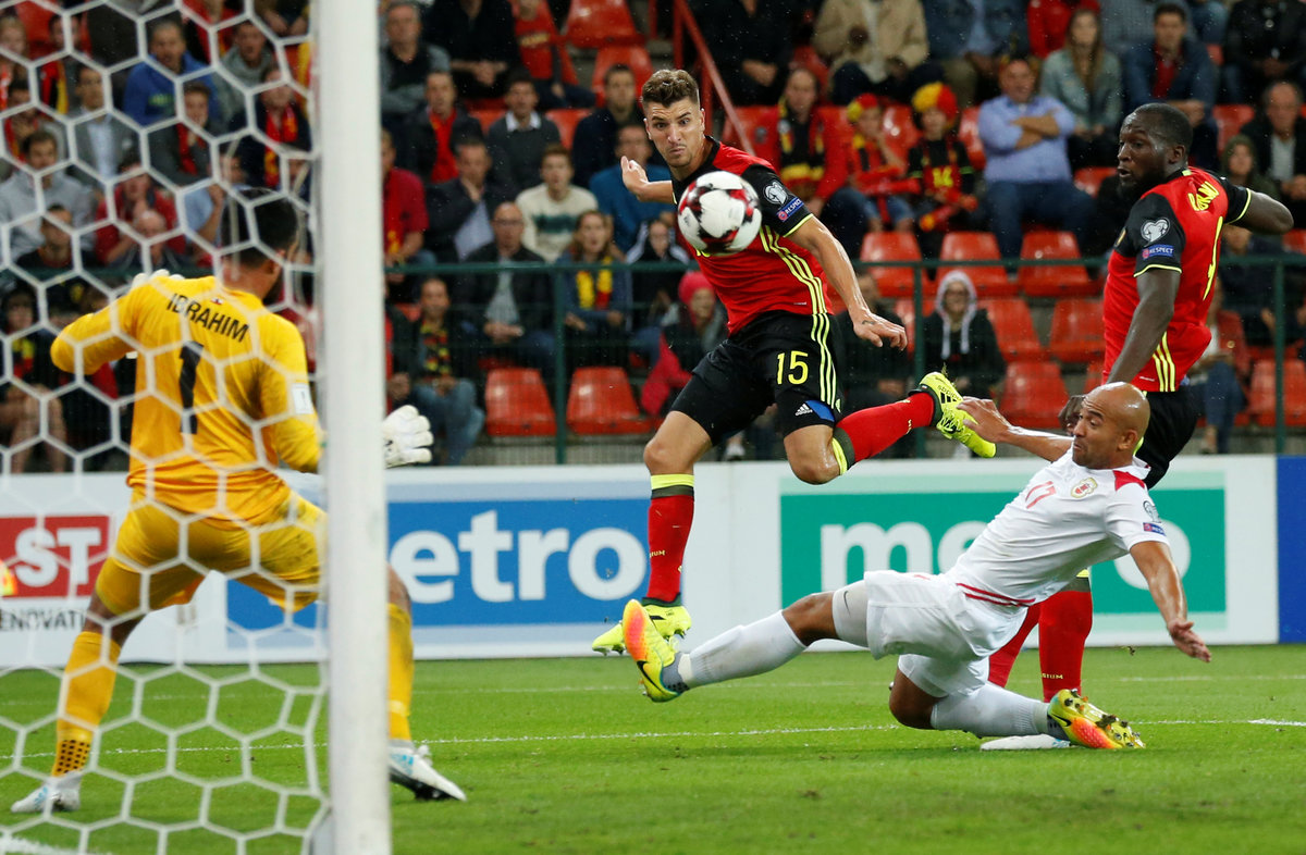 LIEGE, Belgium (Reuters) - Belgium stayed firmly on course to reach the 2018 World Cup after midfielder Thomas Meunier scored three goals and delivered as many assists in their 9-0 Group H qualifying demolition of Gibraltar on Thursday.