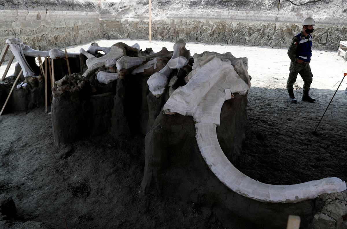 A worker of Mexico's National Institute of Anthropology and History (INAH) works at a site where more than 100 mammoth skeletons have been identified, along with a mix of other ice age mammals, at an area where a new international airport is currently being built, in Zumpango, near Mexico City, Mexico September 8, 2020. REUTERS/Henry RomeroWorkers of Mexico's National Institute of Anthropology and History (INAH) work at a site where more than 100 mammoth skeletons have been identified, along with a mix of other ice age mammals, at an area where a new international airport is currently being built, in Zumpango, near Mexico City, Mexico September 8, 2020. REUTERS/Henry RomeroAn archaeologist and a worker of Mexico's National Institute of Anthropology and History (INAH) work at a site where more than 100 mammoth skeletons have been identified, along with a mix of other ice age mammals, at an area where a new international airport is currently being built, in Zumpango, near Mexico City, Mexico September 8, 2020. REUTERS/Henry Romero