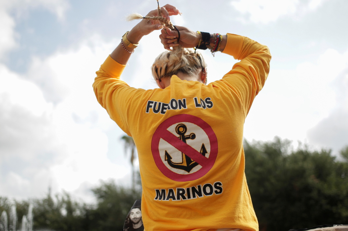 "We are asking the Marines for justice," said Leticia Martinez Borjas at the ceremony. Her husband, Gabriel Gasper Vazquez, disappeared on March 26, 2018.