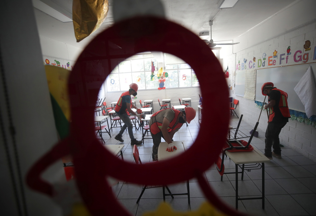 Wiping away dust from bookshelves and mopping grimy floors, teachers and parents across Mexico are sprucing up vandalised schools ahead of the nationwide reopening on June 7.