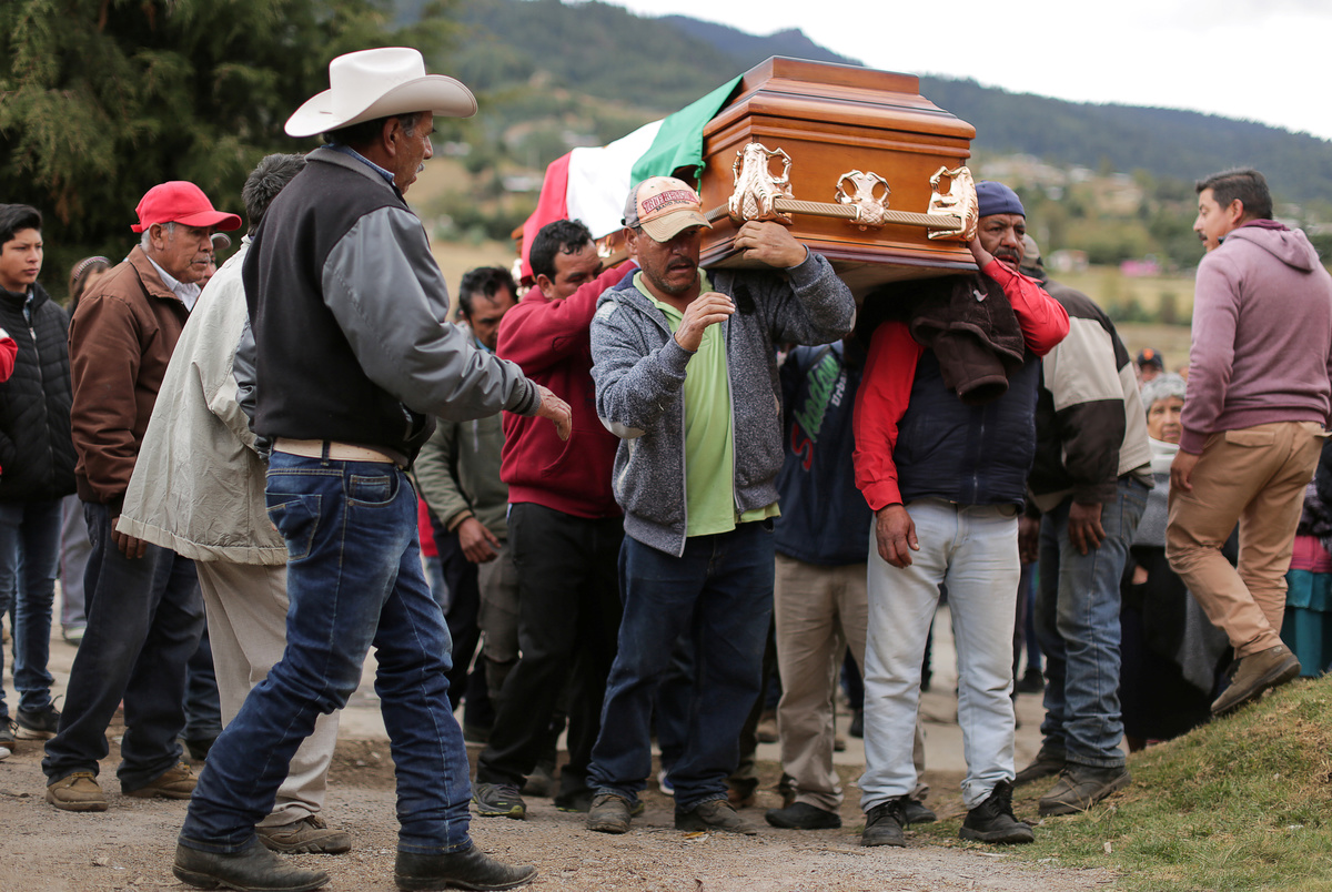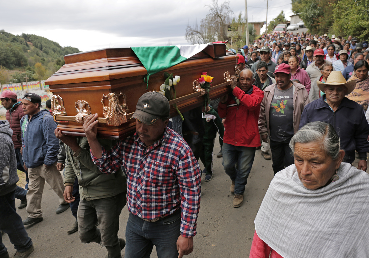 Relatives and friends carry the coffin of environmental activist Homero Gomez, who fought to protect the famed monarch butterfly and was found dead two weeks after he disappeared, during his funeral service in the western Mexican state of Michoacan, Mexico January 30, 2020. REUTERS/Alan OrtegaRelatives and friends carry the coffin of environmental activist Homero Gomez, who fought to protect the famed monarch butterfly and was found dead two weeks after he disappeared, during his funeral service in the western Mexican state of Michoacan, Mexico January 30, 2020. REUTERS/Alan OrtegaPeople walk behind the vehicle carrying the coffin of environmental activist Homero Gomez, who fought to protect the famed monarch butterfly and was found dead two weeks after he disappeared, during his funeral service in the western Mexican state of Michoacan, Mexico January 30, 2020. REUTERS/Alan Ortega