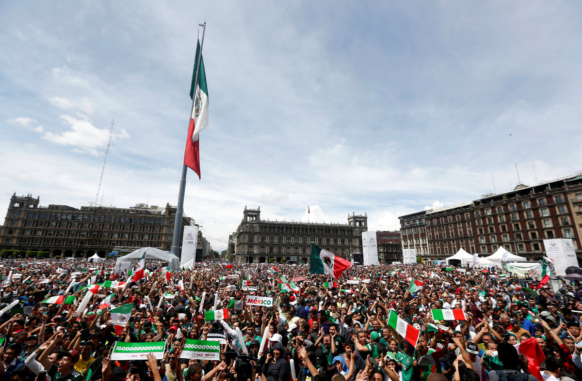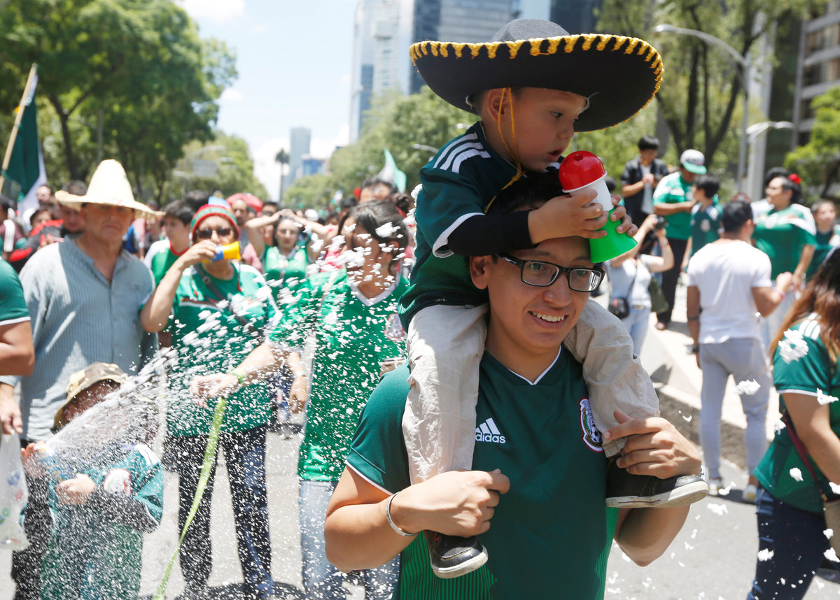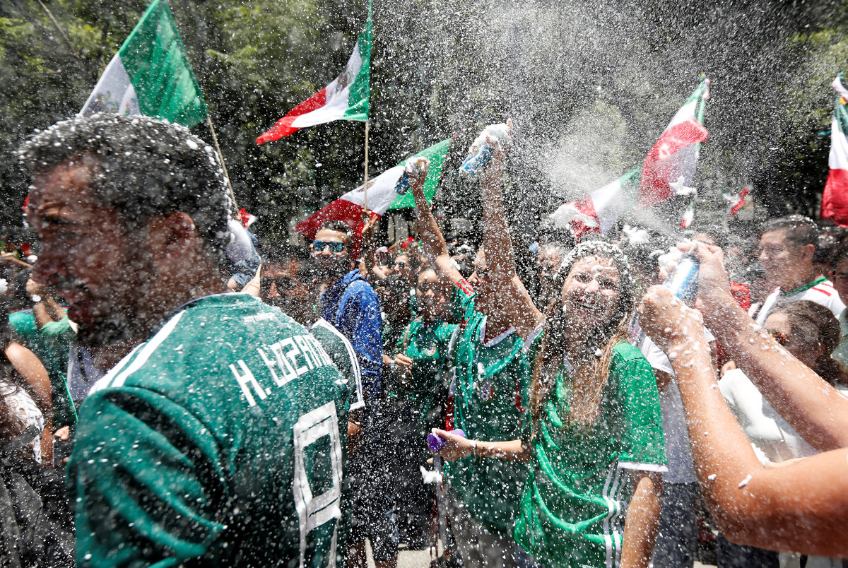 In the city's massive main square, families in Mexican football jerseys had watched on a giant screen in front of a towering cathedral as Mexico beat Germany 1-0 in Moscow.
