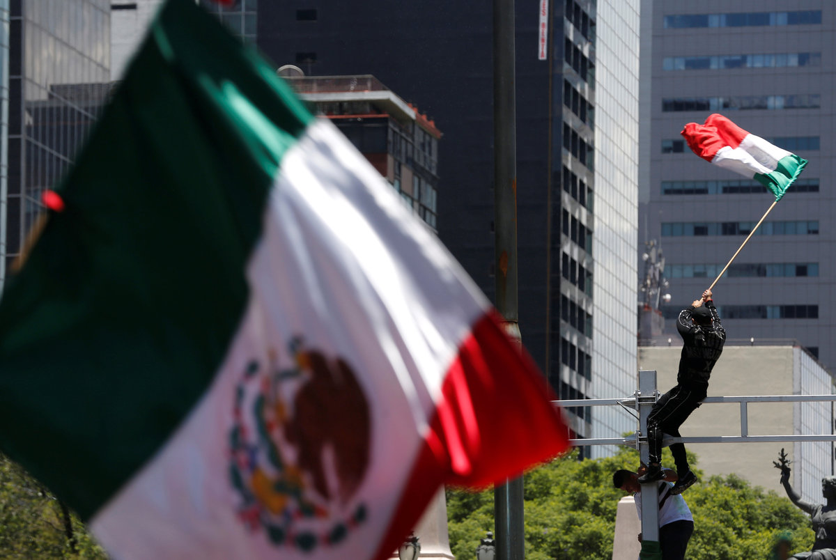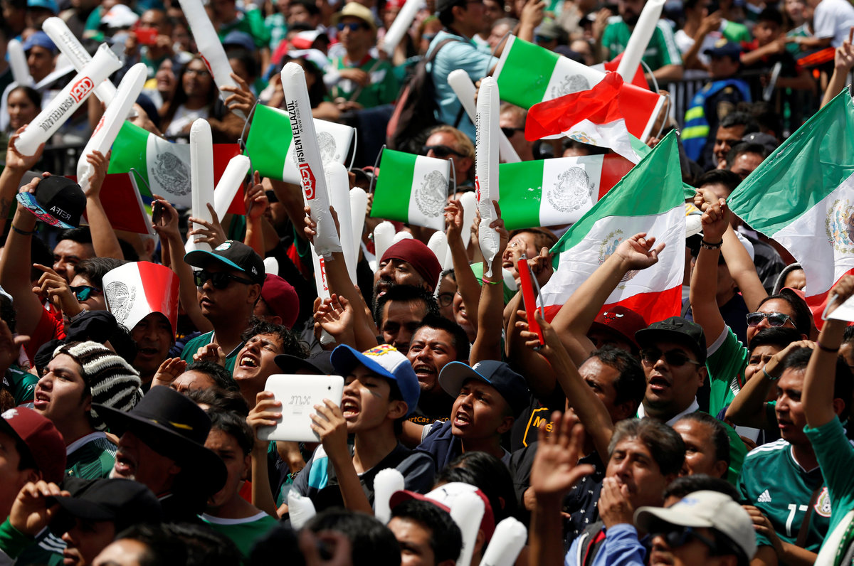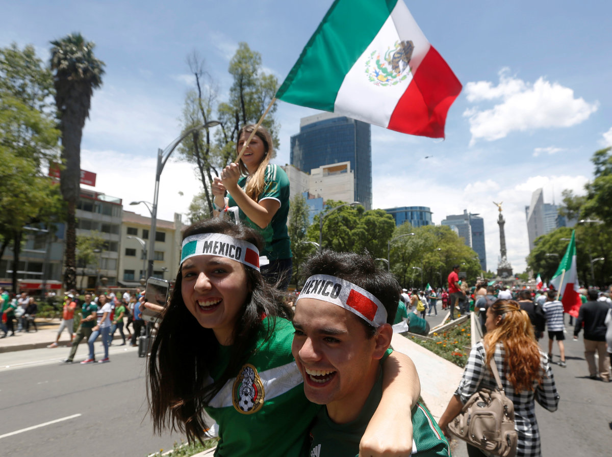 Elated fans waved Mexican flags and donned traditional "sombrero" hats at the iconic Angel of Independence monument in downtown Mexico City as they sang the country's unofficial soccer anthem, "Cielito Lindo," or "Pretty Little Sky," a popular folksong.