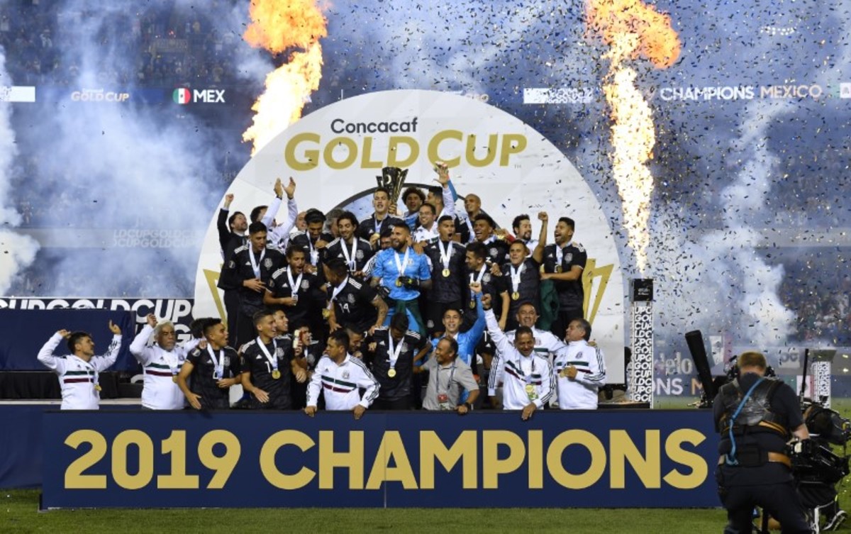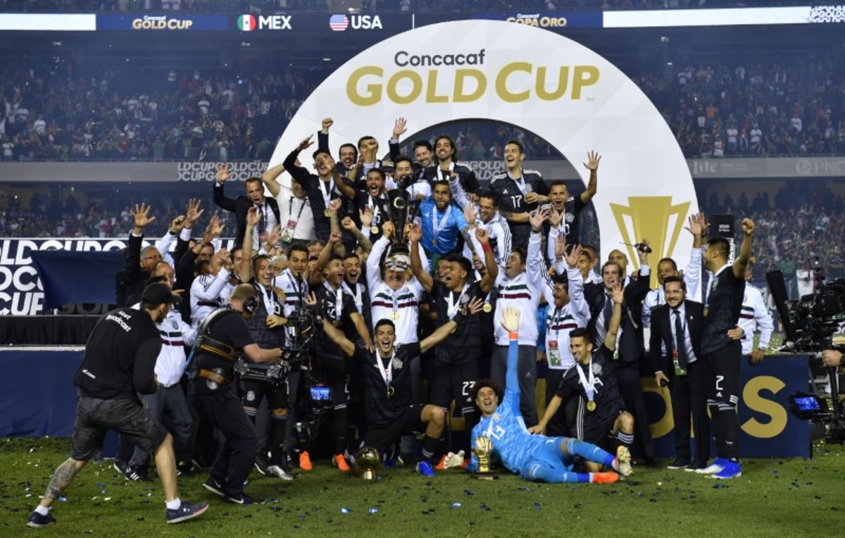 Jul 7, 2019; Chicago, IL, USA; Mexico players celebrate after defeating the United States in the championship match of the CONCACAF Gold Cup soccer tournament at Soldier Field. Quinn Harris-USA TODAY Sports