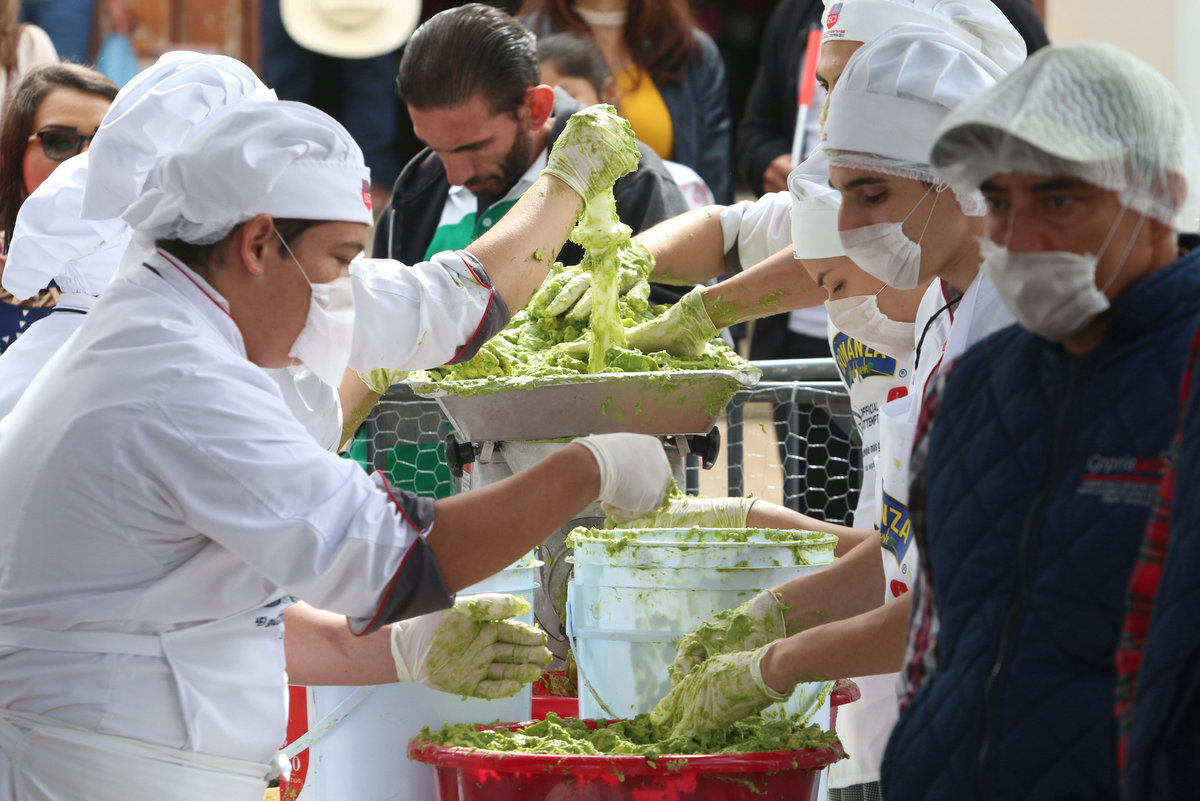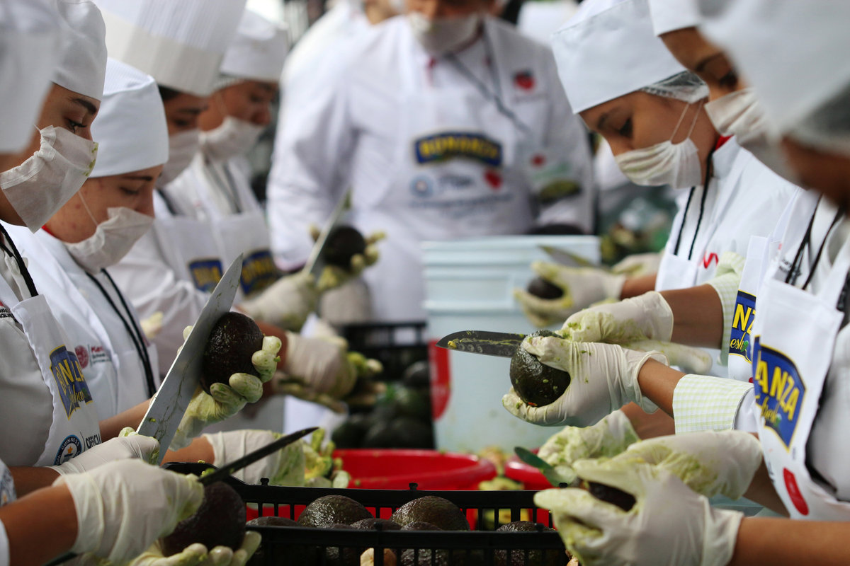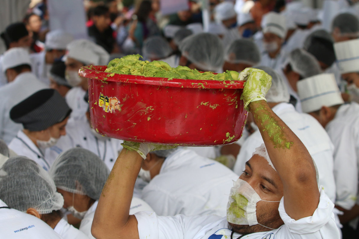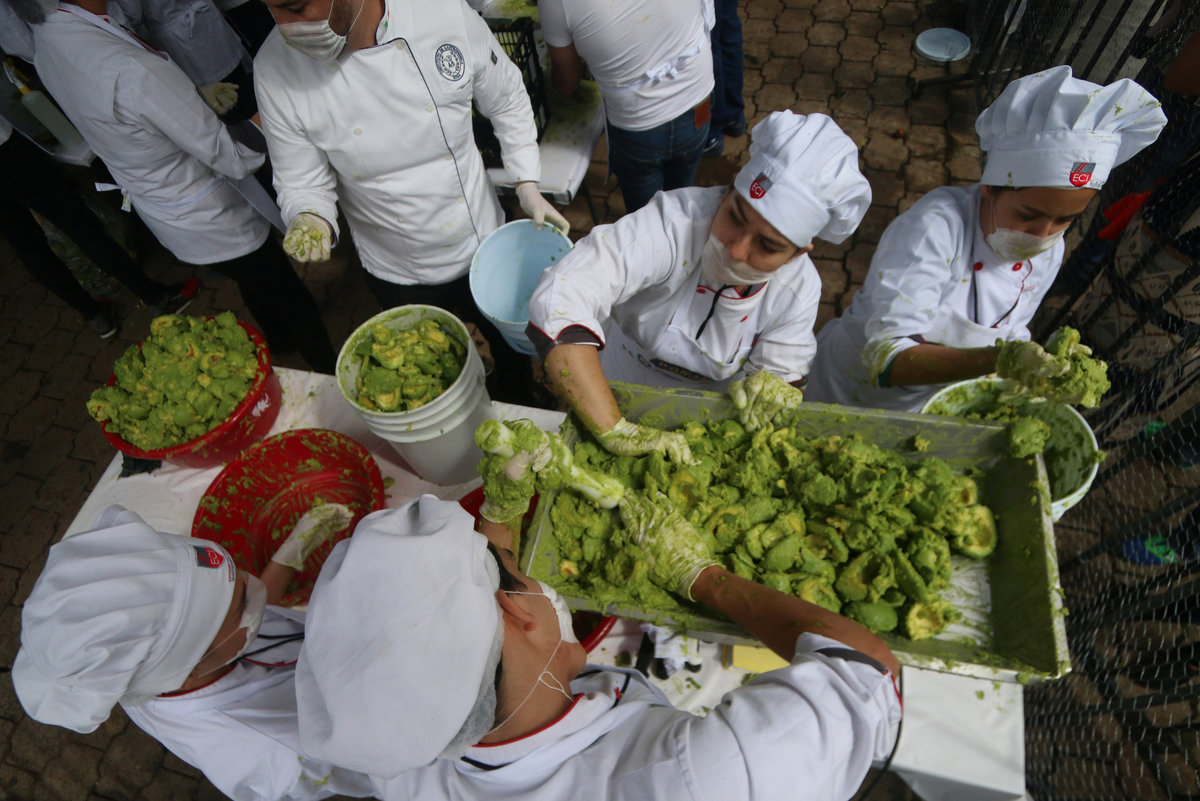 Volunteers from a culinary school mix mashed avocados as they attempt to set a new Guinness World Record for the largest serving of guacamole in Concepcion de Buenos Aires, Jalisco, Mexico September 3, 2017. REUTERS/Fernando CarranzaVolunteers from a culinary school mash avocados as they attempt to set a new Guinness World Record for the largest serving of guacamole in Concepcion de Buenos Aires, Jalisco, Mexico September 3, 2017. REUTERS/Fernando CarranzaVolunteers from a culinary school mash avocados as they attempt to set a new Guinness World Record for the largest serving of guacamole in Concepcion de Buenos Aires, Jalisco, Mexico September 3, 2017. REUTERS/Fernando CarranzaVolunteers from a culinary school work to break the Guinness World Record for the biggest guacamole in Concepcion de Buenos Aires, Jalisco, Mexico September 3, 2017. REUTERS/Fernando CarranzaVolunteers from a culinary school cut avocados as they attempt to set a new Guinness World Record for the largest serving of guacamole in Concepcion de Buenos Aires, Jalisco, Mexico September 3, 2017. REUTERS/Fernando CarranzaVolunteers from a culinary school cut avocados as they attempt to set a new Guinness World Record for the largest serving of guacamole in Concepcion de Buenos Aires, Jalisco, Mexico September 3, 2017. REUTERS/Fernando CarranzaVolunteers from a culinary school cut avocados as they attempt to set a new Guinness World Record for the largest serving of guacamole in Concepcion de Buenos Aires, Jalisco, Mexico September 3, 2017. REUTERS/Fernando Carranza