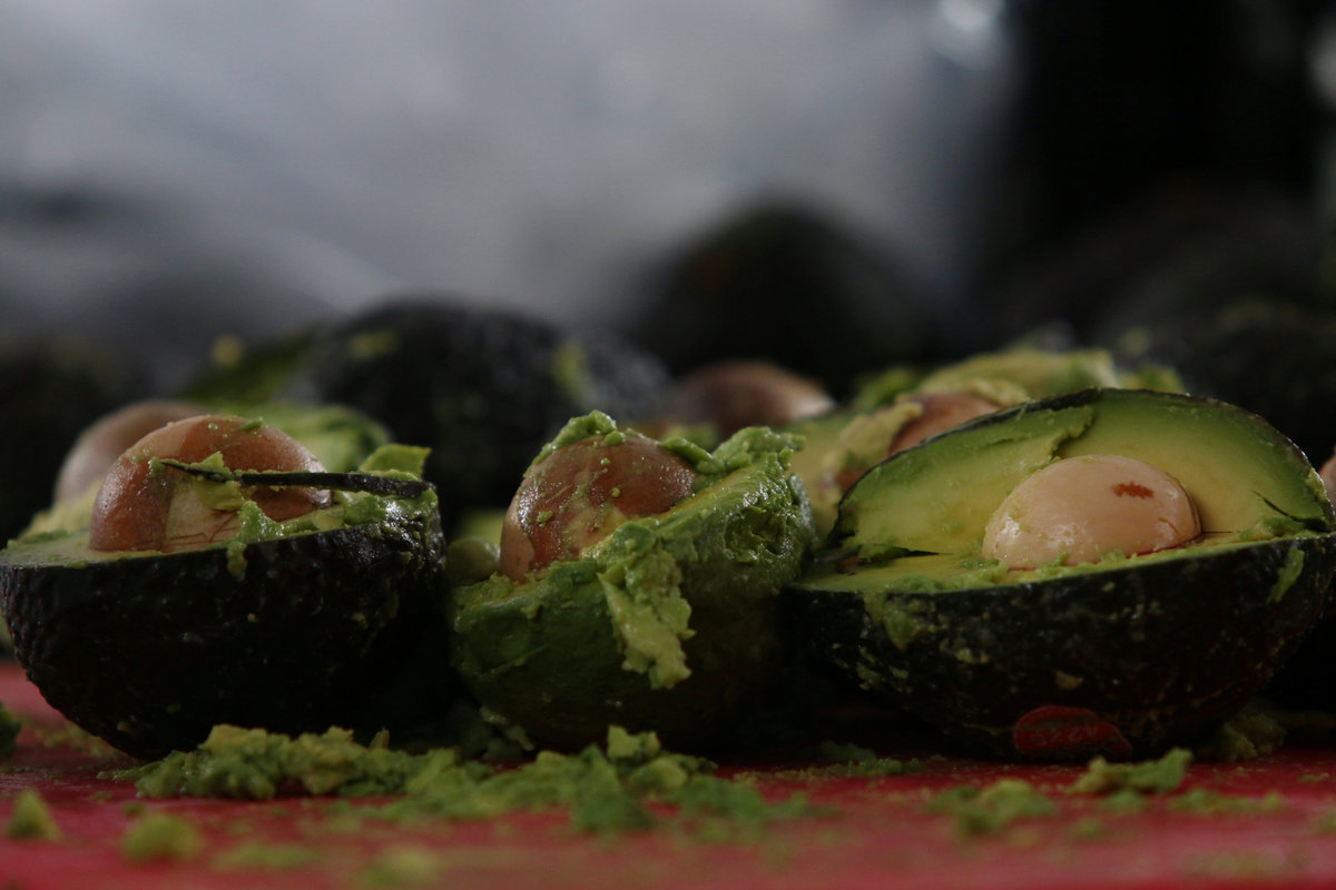 Avocados are pictured as volunteers from a culinary school attempt to set a new Guinness World Record for the largest serving of guacamole in Concepcion de Buenos Aires, Jalisco, Mexico September 3, 2017. REUTERS/Fernando Carranza