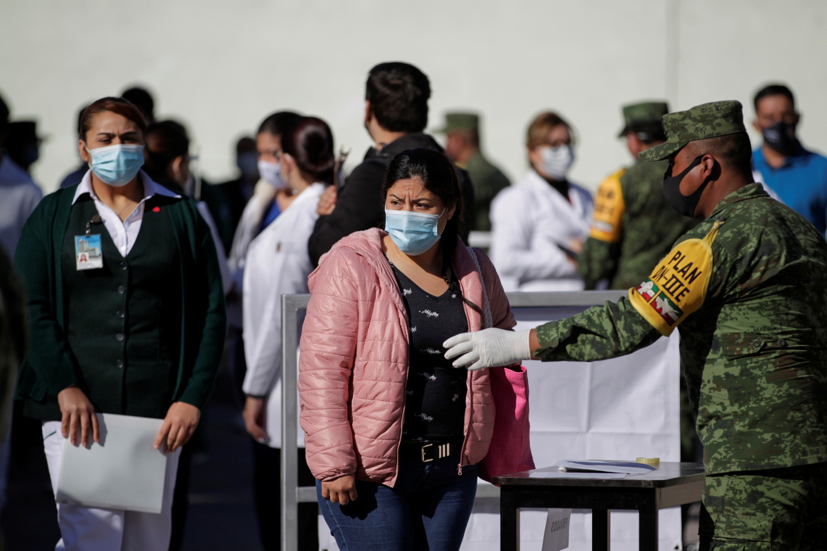 Medical workers line up before receiving an injection with a dose of the Pfizer-BioNTech COVID-19 vaccine at the Regional Military Specialty Hospital as the coronavirus disease (COVID-19) outbreak continues, in San Nicolas de los Garza, on the outskirts of Monterrey, Mexico January 7, 2021. REUTERS/Daniel Becerril