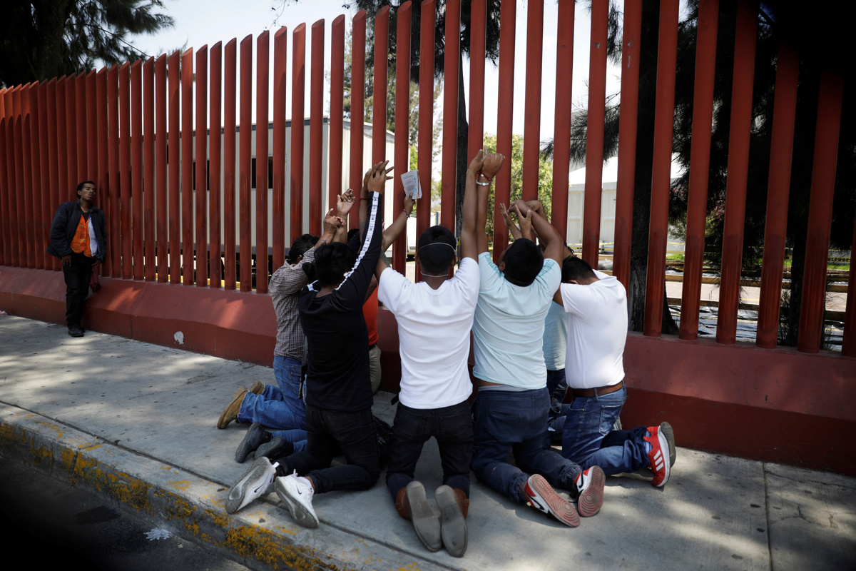 Family members of a patient suffering from coronavirus disease (COVID-19) pray outside the hospital where he is interned for treatment, in Mexico City, Mexico May 19, 2020. REUTERS/Luis Cortes