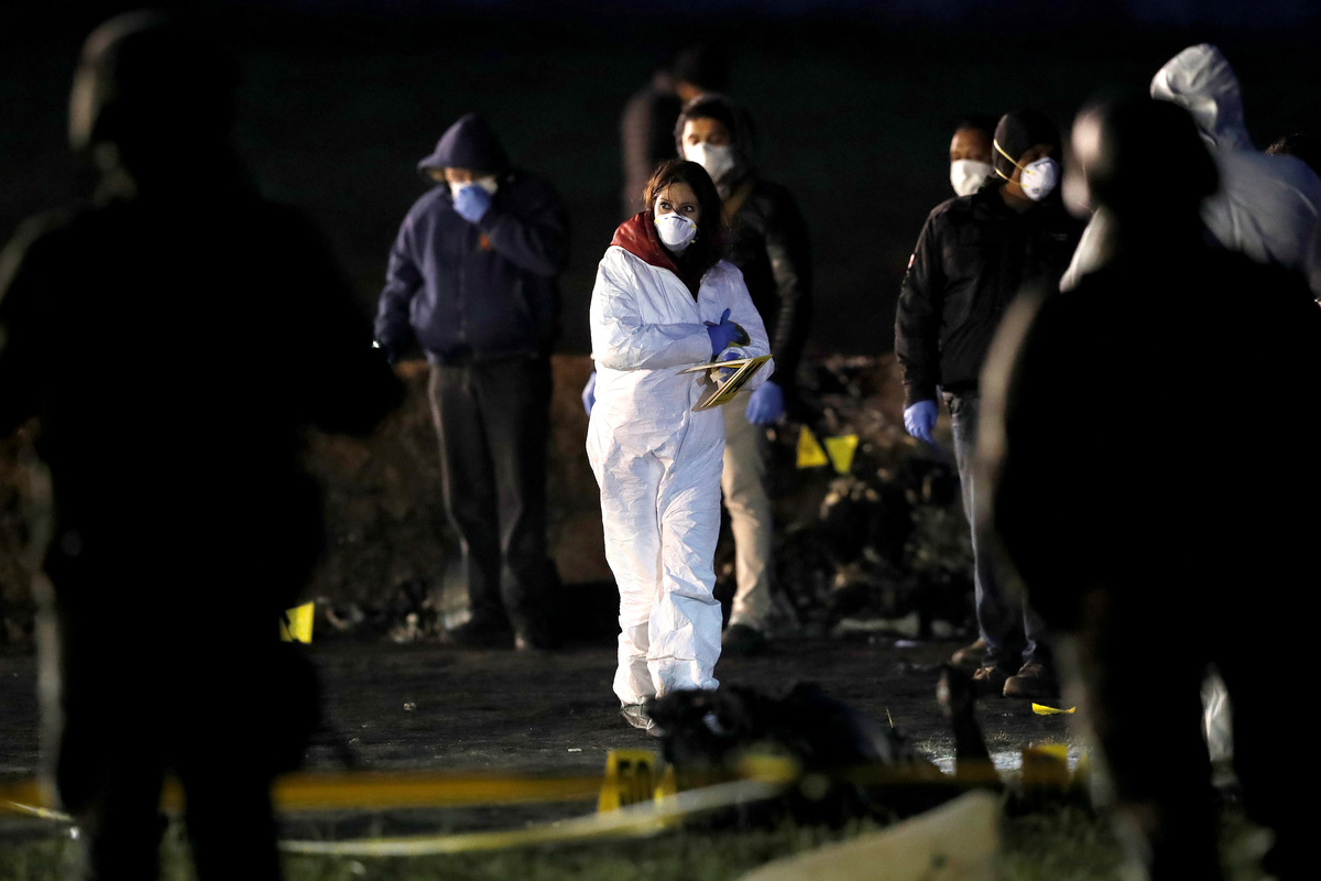 Forensic experts filled body bags with charred human remains in the field where the explosion occurred on Friday evening by the town of Tlahuelilpan in the state of Hidalgo, in one of the deadliest incidents to hit Mexico's troubled oil infrastructure in years.