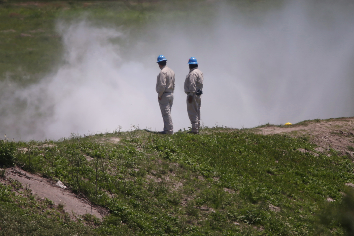 A soldier stands guard near the area where a gas leak caused an evacuation in Nextlalpan municipality, in Mexico state, Mexico August 2, 2019. REUTERS/Edgard GarridoFirefighters throw water at area where a gas leak caused the evacuation of nearly 2,000 people, in Nextlalpan municipality, in Mexico state, Mexico August 2, 2019. REUTERS/Edgard GarridoThe area where a gas leak caused the evacuation of nearly 2,000 people, is pictured in Nextlalpan municipality, in Mexico state, Mexico August 2, 2019. REUTERS/Edgard GarridoA family is pictured in an improvised shelter after a gas leak caused the evacuation of nearly 2,000 people, in Nextlalpan municipality, in Mexico state, Mexico August 2, 2019. REUTERS/Edgard GarridoPeople eat in an improvised shelter after a gas leak caused the evacuation of nearly 2,000 people, in Nextlalpan municipality, in Mexico state, Mexico August 2, 2019. REUTERS/Edgard GarridoRescue workers look at area where a gas leak caused the evacuation of nearly 2,000 people, in Nextlalpan municipality, in Mexico state, Mexico August 2, 2019. REUTERS/Edgard GarridoRescue workers are pictured near the area where a gas leak caused the evacuation of nearly 2,000 people, in Nextlalpan municipality, Mexico state, Mexico August 2, 2019. REUTERS/Edgard Garrido