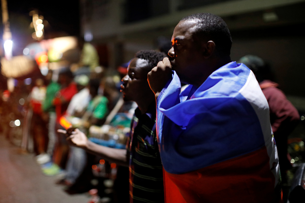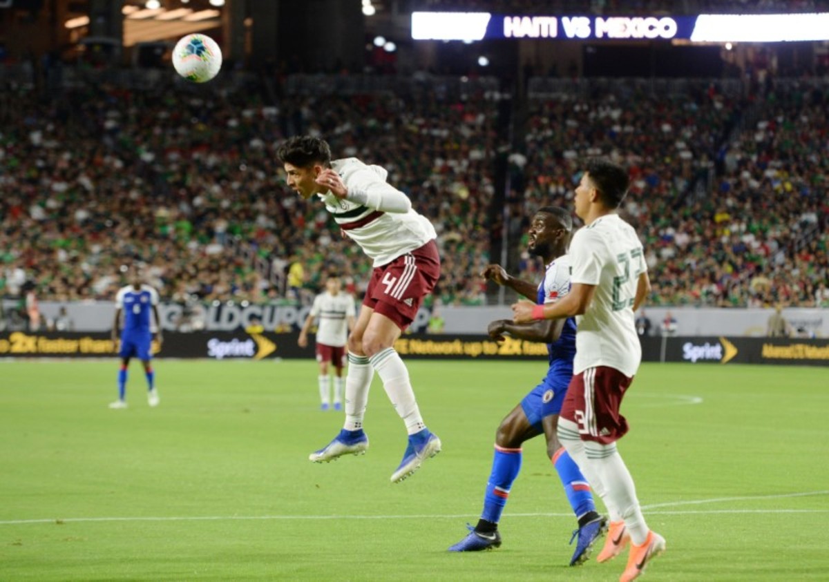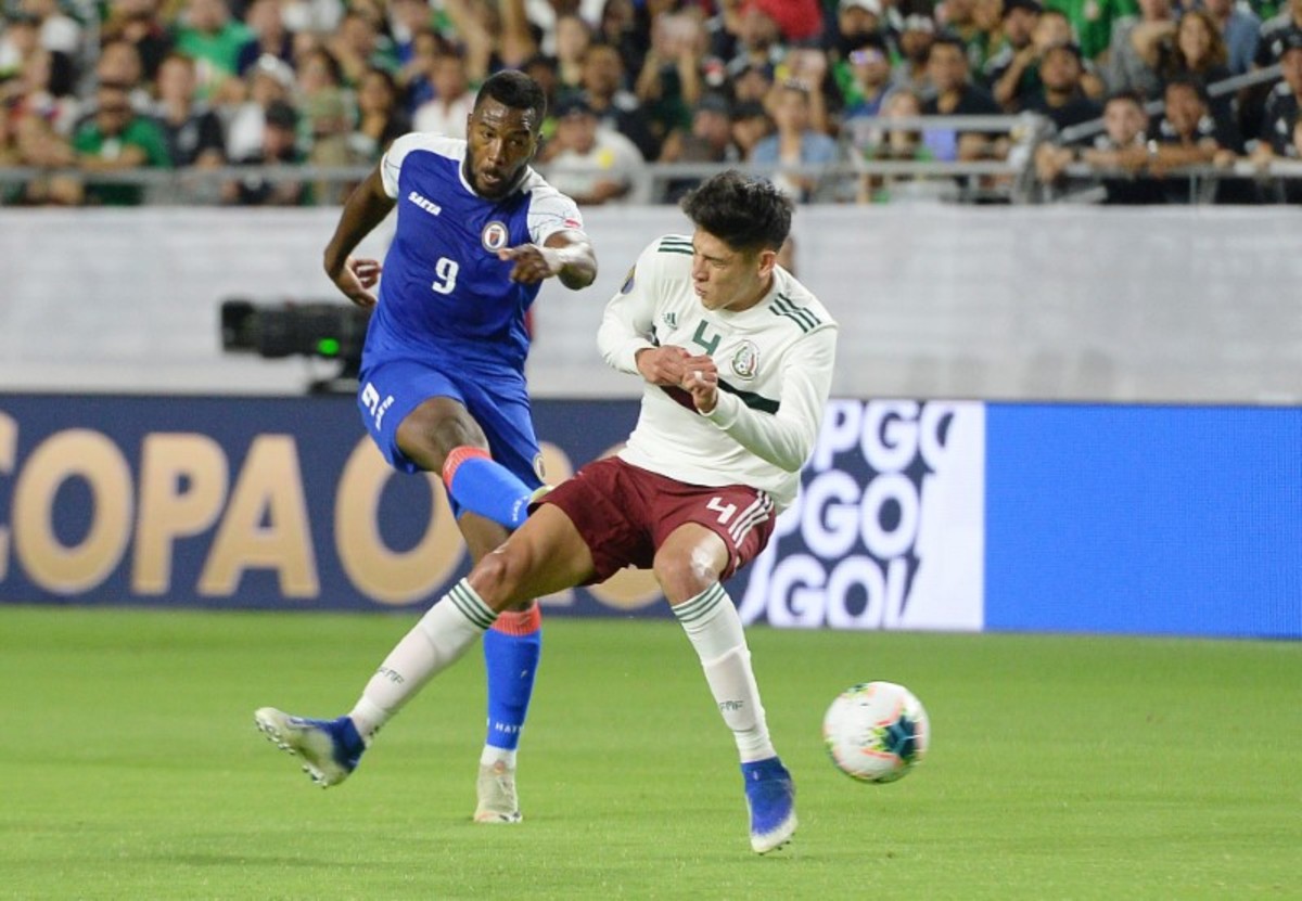 Jul 2, 2019; Glendale, AZ, USA; Mexico midfielder Andres Guardado (left) reacts as he is upended by Haiti midfielder Bryan Alceus during semi-final play in the CONCACAF Gold Cup soccer tournament at State Farm Stadum. Alceus would receive a yellow card on the play. Mandatory Credit: Mark J. Rebilas-USA TODAY SportsJul 2, 2019; Glendale, AZ, USA; Mexico defender Edson Alvarez (4) heads the ball against the Haiti during the first half of semi-final play in the CONCACAF Gold Cup soccer tournament at State Farm Stadum. Mandatory Credit: Joe Camporeale-USA TODAY SportsJul 2, 2019; Glendale, AZ, USA; Haiti forward Duckens Nazon (9) shoots the ball by Mexico defender Edson Alvarez (4) during the first half of semi-final play in the CONCACAF Gold Cup soccer tournament at State Farm Stadum. Mandatory Credit: Joe Camporeale-USA TODAY SportsJul 2, 2019; Glendale, AZ, USA; Haiti midfielder Bryan Alceus (21) moves the ball by Mexico defender Edson Alvarez (4) during the first half of semi-final play in the CONCACAF Gold Cup soccer tournament at State Farm Stadum. Mandatory Credit: Joe Camporeale-USA TODAY SportsJul 2, 2019; Glendale, AZ, USA; Haiti forward Frantzdy Pierrot (20) heads the ball by Mexico defender Hector Moreno (15) during the first half of semi-final play in the CONCACAF Gold Cup soccer tournament at State Farm Stadum. Mandatory Credit: Joe Camporeale-USA TODAY SportsJul 2, 2019; Glendale, AZ, USA; Mexico defender Hector Moreno (15) and Haiti forward Frantzdy Pierrot (20) go after the ball during the first half of semi-final play in the CONCACAF Gold Cup soccer tournament at State Farm Stadum. Mandatory Credit: Joe Camporeale-USA TODAY SportsJul 2, 2019; Glendale, AZ, USA; Mexico players huddle prior the first half of semi-final play in the CONCACAF Gold Cup soccer tournament against Haiti at State Farm Stadum. Mandatory Credit: Joe Camporeale-USA TODAY SportsJul 2, 2019; Glendale, AZ, USA; Mexico forward Rodolfo Pizarro (right) controls the ball against Haiti midfielder Steeven Saba in the first half during semi-final play in the CONCACAF Gold Cup soccer tournament at State Farm Stadum. Mandatory Credit: Mark J. Rebilas-USA TODAY SportsJul 2, 2019; Glendale, AZ, USA; Mexico forward Rodolfo Pizarro reacts after being upended against Haiti in the first half during semi-final play in the CONCACAF Gold Cup soccer tournament at State Farm Stadum. Mandatory Credit: Mark J. Rebilas-USA TODAY SportsJul 2, 2019; Glendale, AZ, USA; Mexico forward Rodolfo Pizarro (right) controls the ball against Haiti midfielder Steeven Saba in the first half during semi-final play in the CONCACAF Gold Cup soccer tournament at State Farm Stadum. Mandatory Credit: Mark J. Rebilas-USA TODAY SportsJul 2, 2019; Glendale, AZ, USA; Mexico forward Raul Jimenez (9) celebrates after scoring a goal against Haiti during the first extra time period of semi-final play in the CONCACAF Gold Cup soccer tournament at State Farm Stadum. Mandatory Credit: Joe Camporeale-USA TODAY SportsREFILE - UPDATING SLUG Haitians watch a television broadcast of the match between Haiti and Mexico during the semi-final of the CONCACAF Gold Cup soccer tournament, at a street in Petion Ville, Port-au-Prince, Haiti July 3, 2019. REUTERS/Andres Martinez CasaresJul 2, 2019; Glendale, AZ, USA; Soccer fans cheer prior to the first half of semi-final play in the CONCACAF Gold Cup soccer tournament at State Farm Stadum. Mandatory Credit: Joe Camporeale-USA TODAY SportsJul 2, 2019; Glendale, AZ, USA; A soccer fans cheer prior to the first half of semi-final play in the CONCACAF Gold Cup soccer tournament at State Farm Stadum. Mandatory Credit: Joe Camporeale-USA TODAY Sports