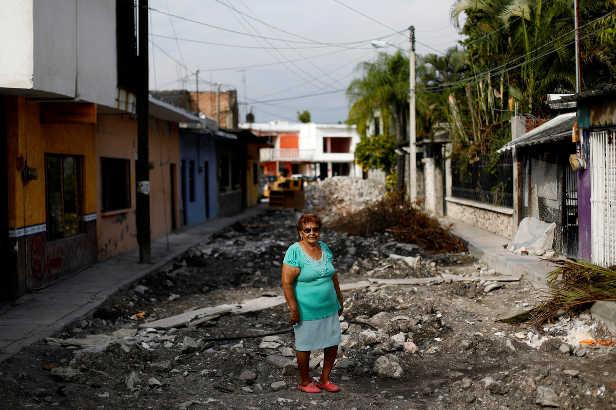 Maria Isabel Alvarado, 75, a housewife, poses for a portrait on a street outside her house after an earthquake in Jojutla de Juarez, Mexico, September 29, 2017. Her house suffered minor damage. REUTERS/Edgard Garrido