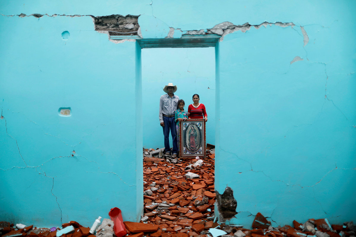 Cenobia Riquelme, 76, a housewife who suffers from Alzheimer's, poses for a portrait next to her house after an earthquake in Jojutla de Juarez, Mexico, September 29, 2017. REUTERS/Edgard Garrido Tomasa Mozo, 69, a housewife, looks up at the roof as she poses for a portrait inside the ruins of her house after an earthquake in San Jose Platanar, at the epicentre zone, Mexico, September 28, 2017. REUTERS/Edgard Garrido Luis Medina, 36, a farm worker, Maria Teresa Espinoza, 35, housewife, and Maria de Jesus Medina, 9, pose for a portrait inside their house which was badly damaged after an earthquake in San Jose Platanar, at the epicentre zone, Mexico, September 28, 2017. REUTERS/Edgard Garrido Jaime Delgado, 21, an agricultural worker, poses for a portrait on rubble in an area where he helped rescue people, after an earthquake in Jojutla de Juarez, Mexico, September 30, 2017. REUTERS/Edgard Garrido Miguel Najera, 50, a farm worker, poses for a portrait on the rubble of his house after an earthquake in San Jose Platanar, at the epicentre zone, Mexico, September 28, 2017. REUTERS/Edgard Garrido Ventura Sanchez, 63, housewife, poses for a portrait on the rubble of her house after an earthquake in La Nopalera, Mexico, September 27, 2017. REUTERS/Edgard GarridoLuis Garcia, 79, a bricklayer, poses for a portrait outside a house that he built, after an earthquake in Jojutla de Juarez, Mexico, September 30, 2017. REUTERS/Edgard Garrido Juan Sanchez, 53, a parishioner and a church guard, poses for a portrait in front San Juan Bautista church after an earthquake in San Juan Pilcaya, at the epicentre zone, Mexico, September 28, 2017. REUTERS/Edgard Garrido Maria Guzman, 70, a housewife, poses for a portrait on the rubble of her house after an earthquake in San Jose Platanar, at the epicentre zone, Mexico, September 28, 2017. REUTERS/Edgard Garrido Maria Trinidad Gonzalez, 41, a housewife, holds some cookware as she poses for a portrait on the rubble of her house after an earthquake in Tepalcingo, Mexico, September 29, 2017. REUTERS/Edgard Garrido Prudencio Gutierrez, 66, a farm worker, poses for a portrait in front of his house after an earthquake in San Francisco Xochiteopan, Mexico, September 27, 2017. REUTERS/Edgard Garrido Veronica Dircio, 34, a housewife, poses for a portrait with her sons in front of a tent in a neighbour's backyard after an earthquake in San Juan Pilcaya, at the epicentre zone, Mexico, September 28, 2017. REUTERS/Edgard Garrido Hector Guzman, 48, peasant and representative of the Municipal President in San Jose Platanar, holds the model of a new house for his father as he poses for a portrait after an earthquake in San Jose Platanar, at the epicentre zone, Mexico, September 28, 2017. REUTERS/Edgard Garrido