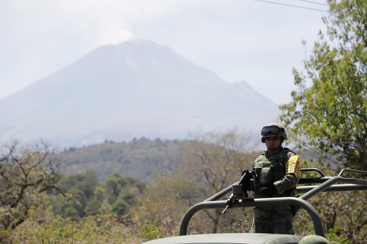 Soldiers check an evacuation route after Mexican authorities raised the alert level for the Popocatepetl volcano (in the background) following an increase in its activity, in San Nicolas de los Ranchos, in Puebla state, Mexico March 28, 2019. REUTERS/Imelda MedinaA soldier walks past a map showing an evacuation route after Mexican authorities raised the alert level for the Popocatepetl volcano following an increase in its activity, in San Nicolas de los Ranchos, in Puebla state, Mexico March 28, 2019. REUTERS/Imelda MedinaA soldier keeps watch atop a military vehicle while checking an evacuation route after Mexican authorities raised the alert level for the Popocatepetl volcano (in the background) following an increase in its activity, in Santiago Xalizintla, in Puebla state, Mexico March 28, 2019. REUTERS/Imelda MedinaSoldiers check an evacuation route after Mexican authorities raised the alert level for the Popocatepetl volcano (in the background) following an increase in its activity, in Santiago Xalizintla, in Puebla state, Mexico March 28, 2019. REUTERS/Imelda MedinaSoldiers check an evacuation route after Mexican authorities raised the alert level for the Popocatepetl volcano following an increase in its activity, in Santiago Xalizintla, in Puebla state, Mexico March 28, 2019. REUTERS/Imelda Medina