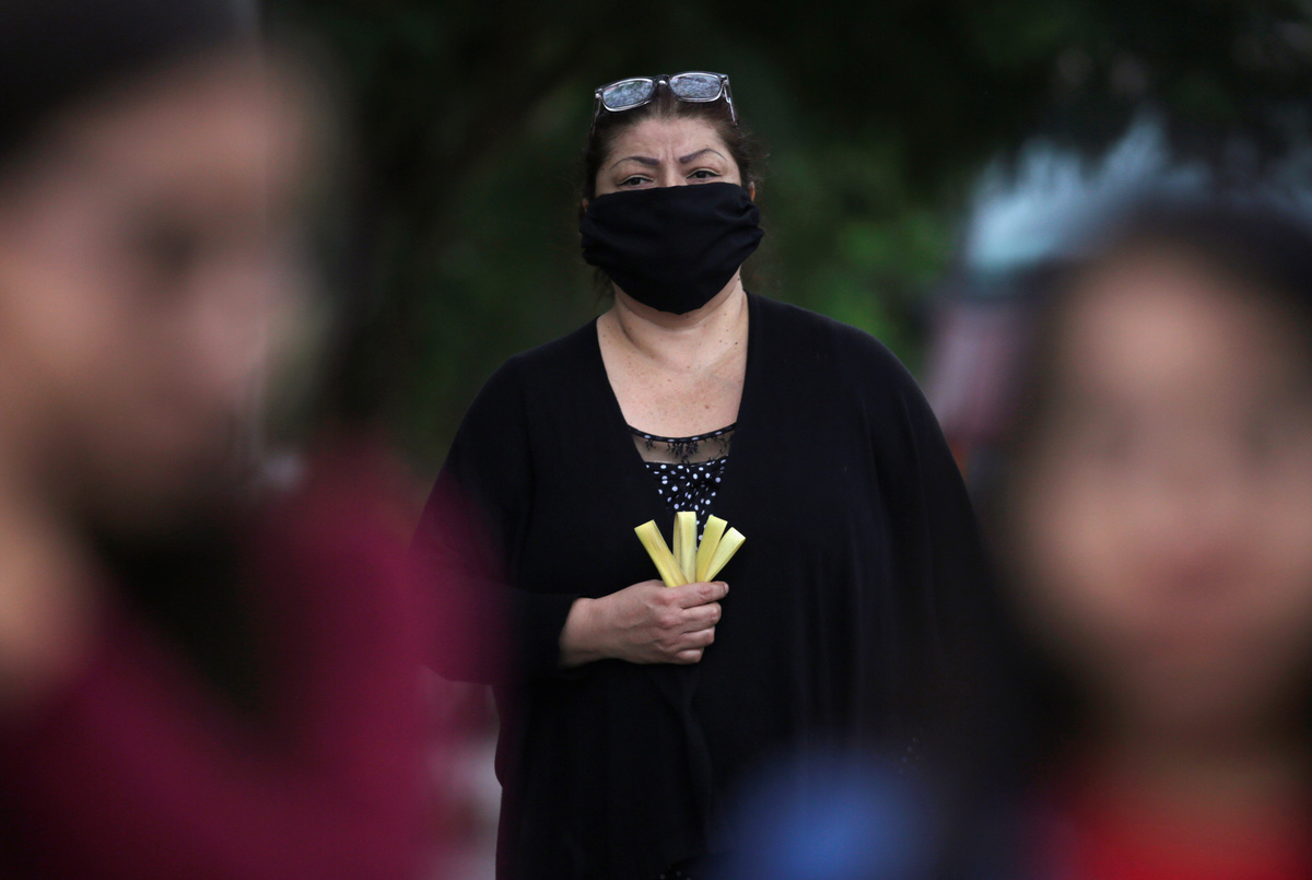 A woman holds a palm during a procession of the Palm Sunday celebration, after Mexico's government declared a health emergency and issued stricter rules to contain the spread of the coronavirus disease (COVID-19), in Escobedo on the outskirts of Monterrey, Mexico April 5, 2020. REUTERS/Daniel Becerril