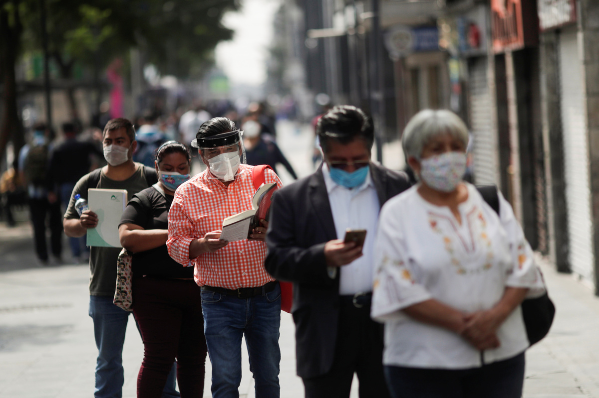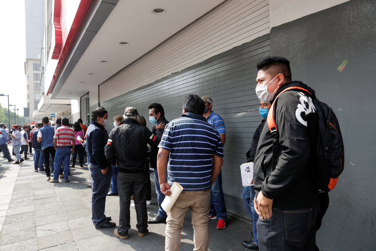 People line up outside a bank branch during the start of gradual reopening of commercial activities in the city, as the coronavirus disease (COVID-19) outbreak continues, in Mexico City, Mexico June 29, 2020. REUTERS/Henry RomeroPeople line up outside a building during the start of gradual reopening of commercial activities in the city, as the coronavirus disease (COVID-19) outbreak continues, in Mexico City, Mexico June 29, 2020. REUTERS/Henry Romero