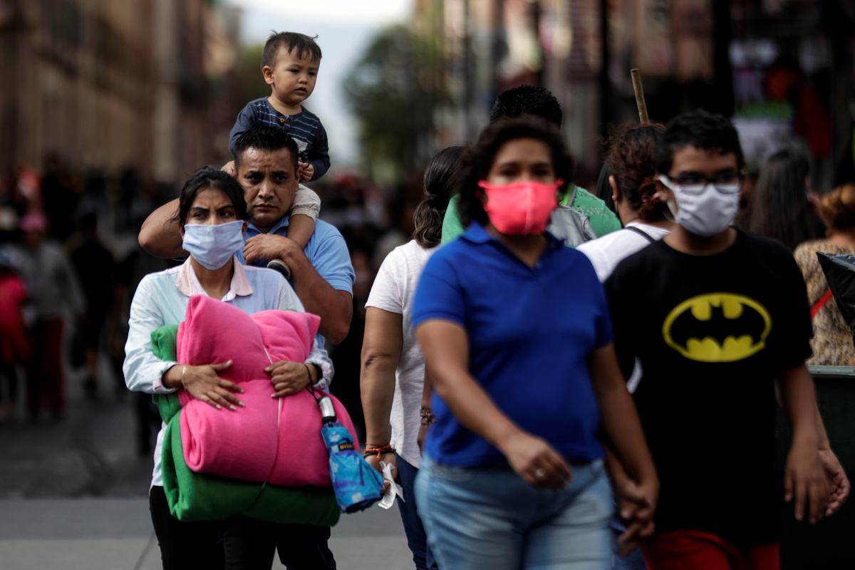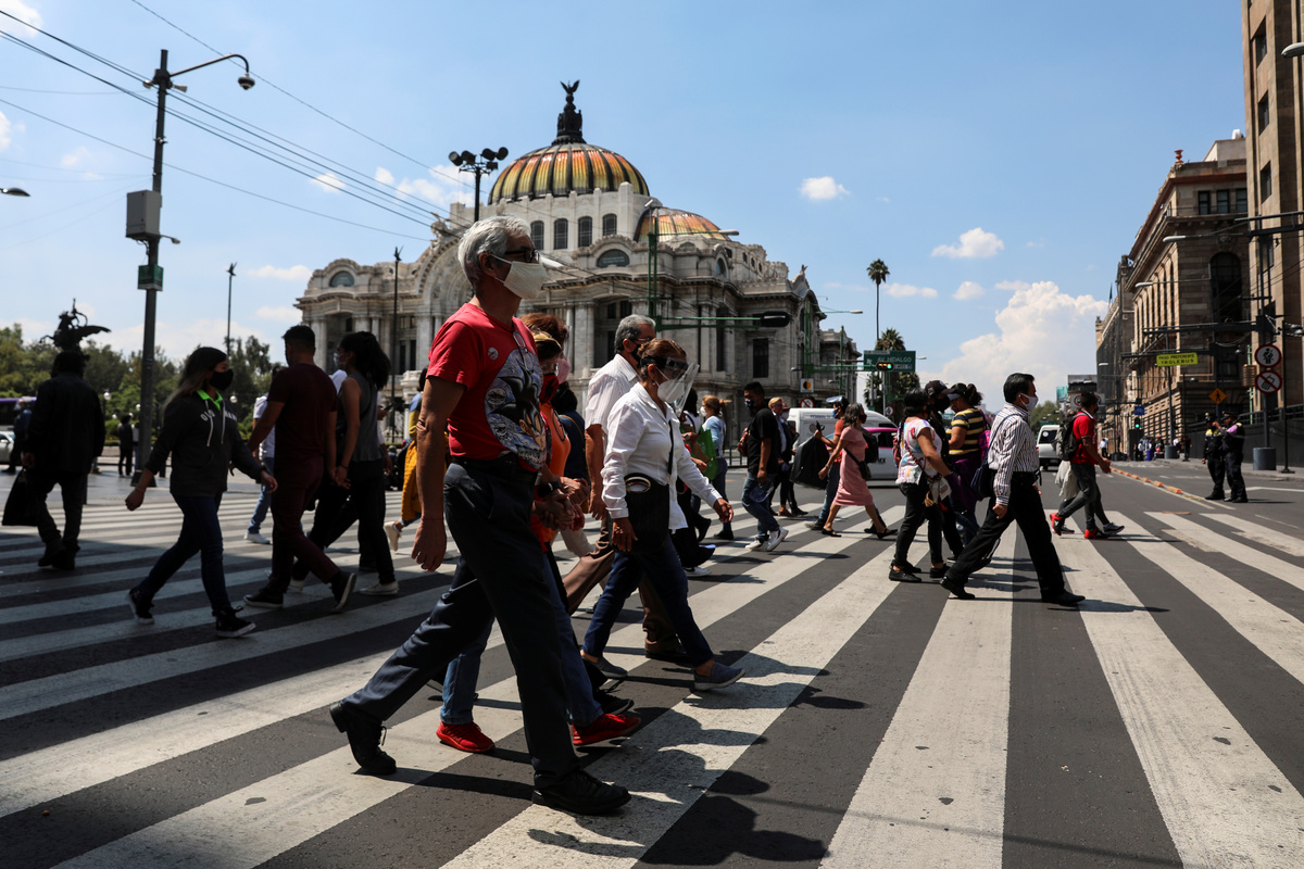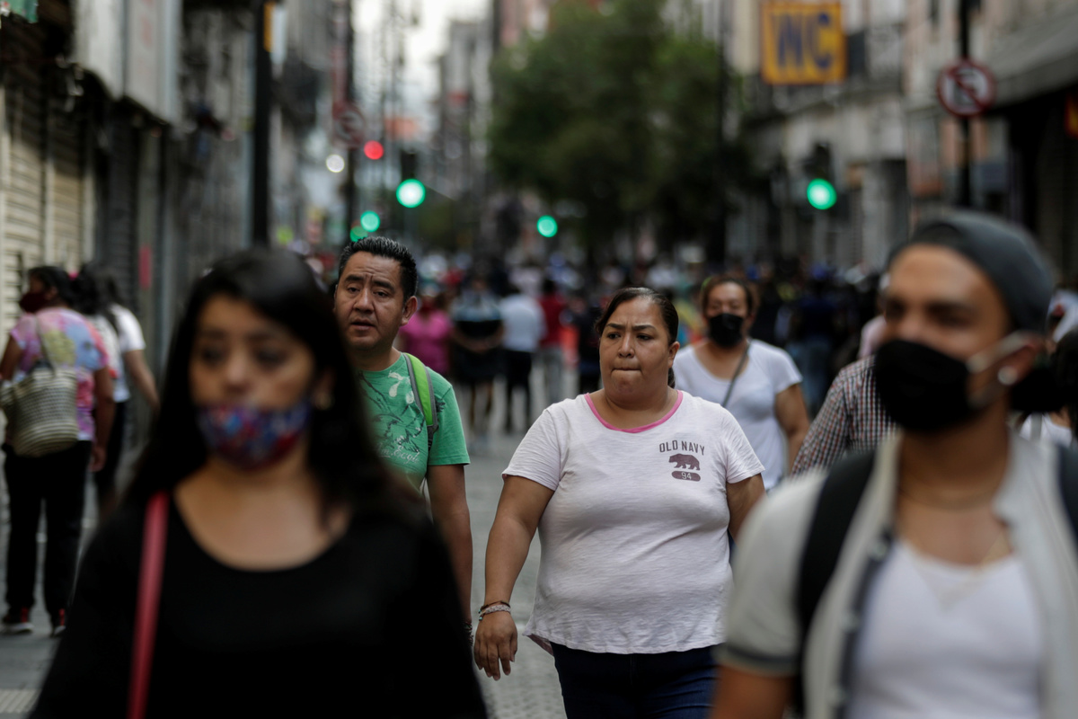 FILE PHOTO: People walk near Zocalo Square during the gradual reopening of commercial activities in the city, as the coronavirus disease (COVID-19) outbreak continues, in Mexico City, Mexico July 13, 2020. REUTERS/Henry Romero