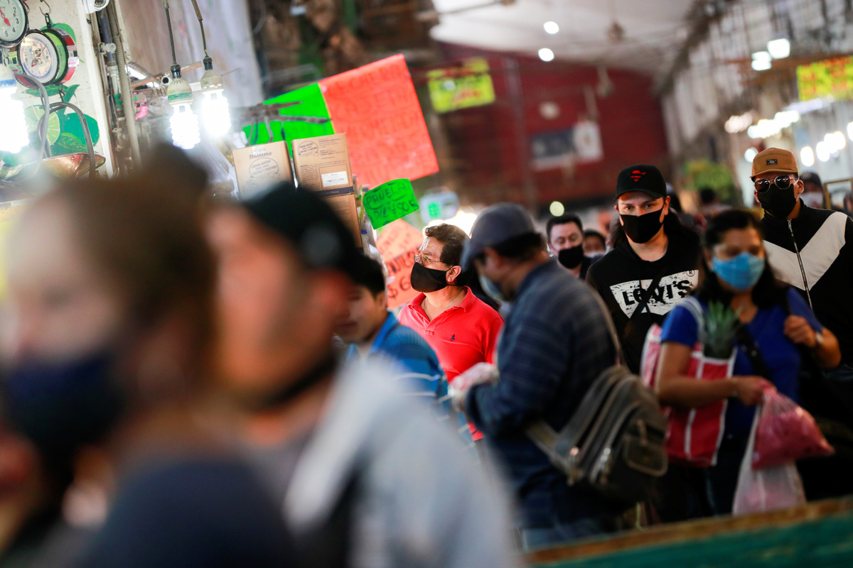 People cross a road near Zocalo Square during the gradual reopening of commercial activities in the city, as the coronavirus disease (COVID-19) outbreak continues, in Mexico City, Mexico July 13, 2020. REUTERS/Henry RomeroPeople are pictured at Central de Abastos, one of the world's largest wholesale market complexes, as the coronavirus disease (COVID-19) outbreak continues in Mexico City, Mexico July 13, 2020. REUTERS/Carlos Jasso