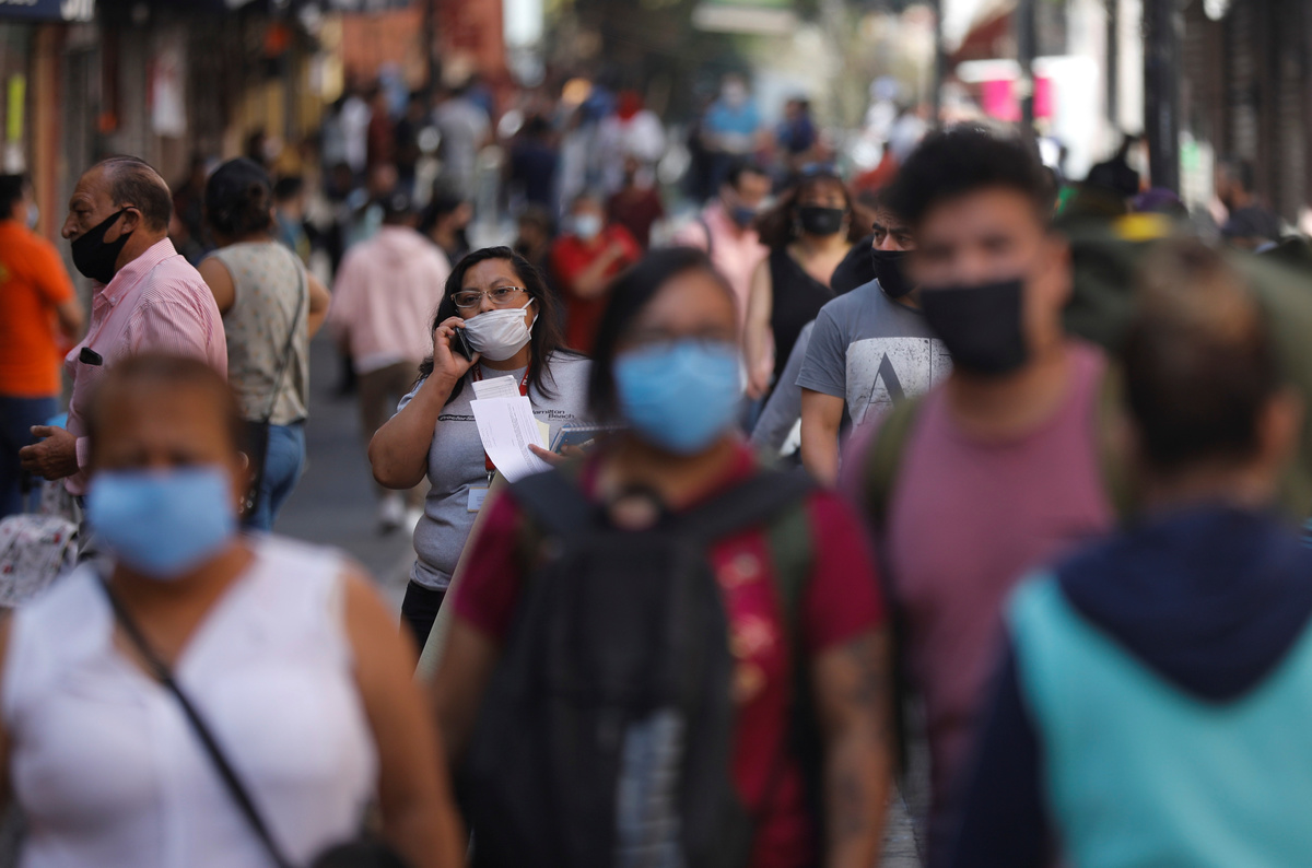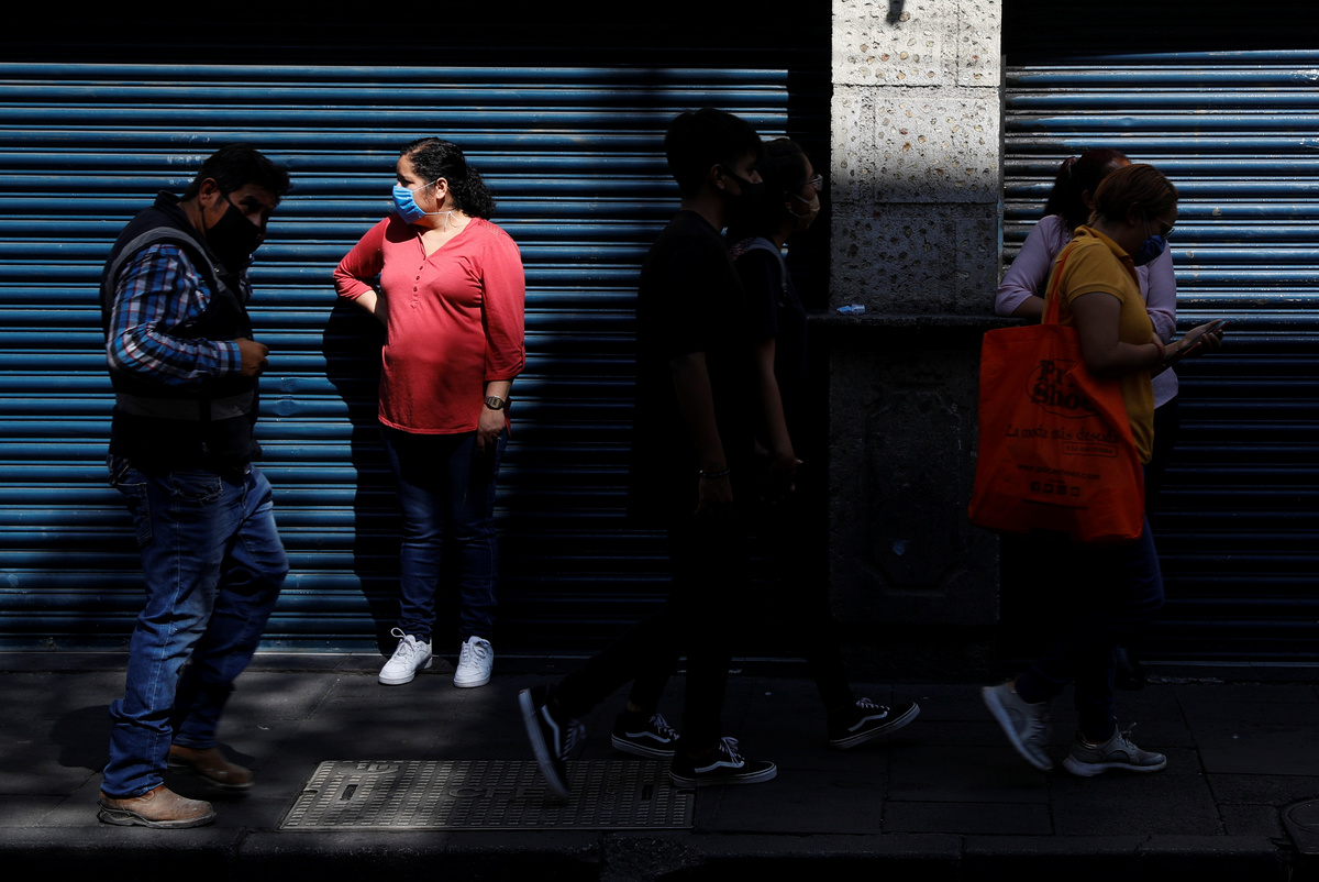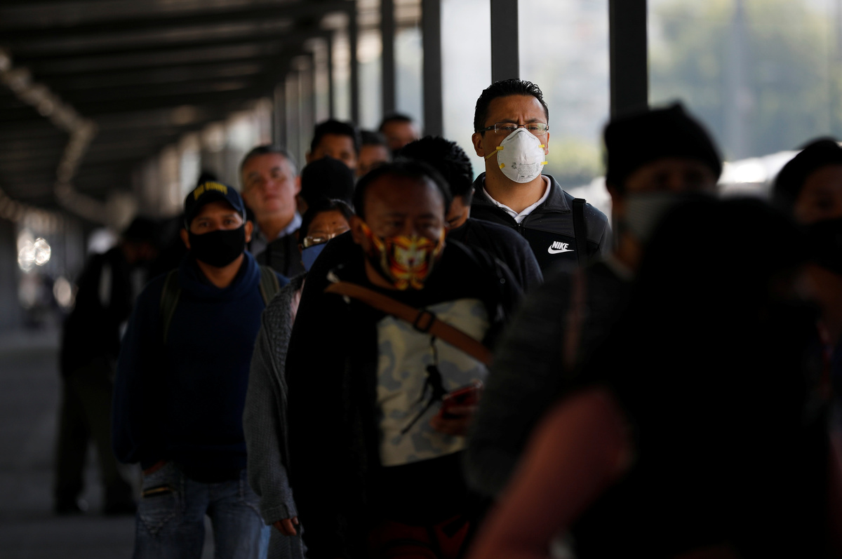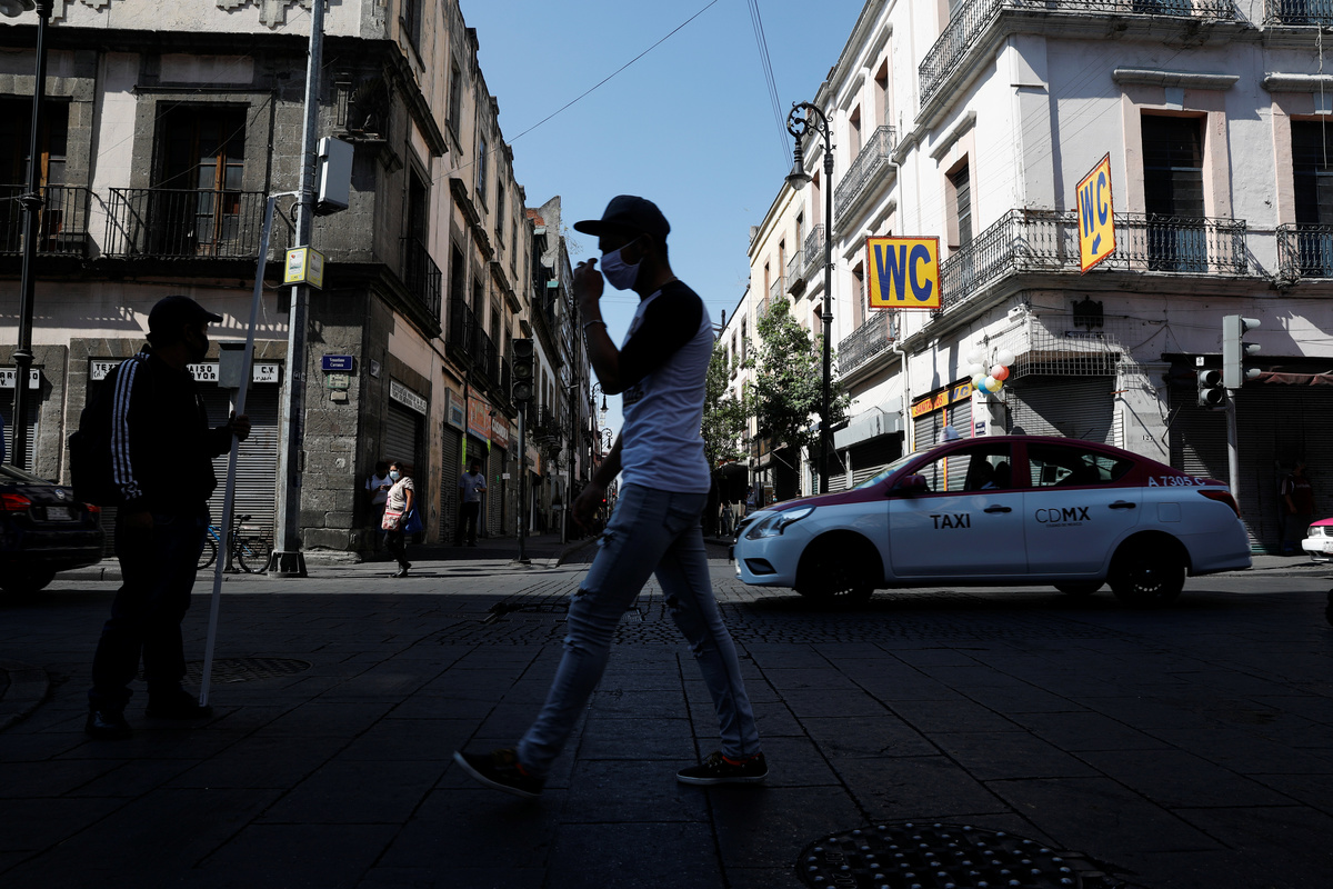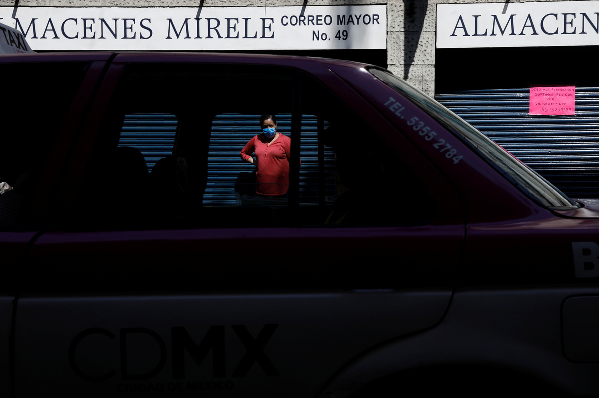 People walk on the street as the outbreak of the coronavirus disease (COVID-19) continues in Mexico City, Mexico June 8, 2020. REUTERS/Carlos JassoA man walks on the street as the outbreak of the coronavirus disease (COVID-19) continues in Mexico City, Mexico June 8, 2020. REUTERS/Carlos JassoPeople queue to try to get into a bus as the outbreak of the coronavirus disease (COVID-19) continues, in Mexico City, Mexico June 8, 2020. REUTERS/Carlos JassoLuis, 62, a patient suffering from the coronavirus disease (COVID-19) and diabetes, is pictured as Red Cross paramedic holds a mask on his face before transferring him from a hospital to another in Mexico City, Mexico, June 8, 2020. REUTERS/Edgard GarridoLuis, 62, a patient suffering from the coronavirus disease (COVID-19) and diabetes, is pictured inside a capsule as Red Cross paramedics transfer him from a hospital to another in Mexico City, Mexico, June 8, 2020. REUTERS/Edgard GarridoA patient suffering from the coronavirus disease (COVID-19) looks to a Red Cross paramedic in a public hospital in Mexico City, Mexico, June 8, 2020. REUTERS/Edgard Garrido