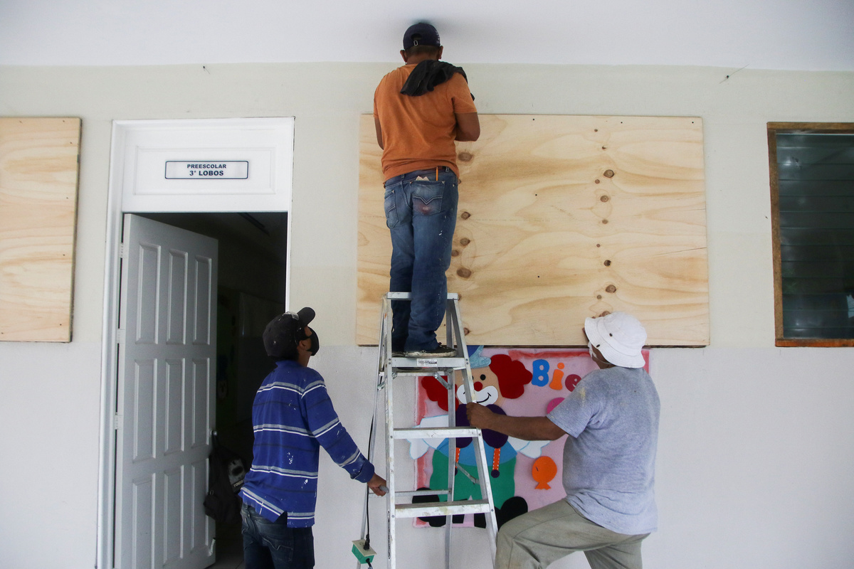 Officials ordered evacuations of Cancun's hotel zone and other coastal areas, and opened the city's convention center as a shelter. Workers at the Avis car rental firm boarded up windows with wood under a light rain on Tuesday afternoon.