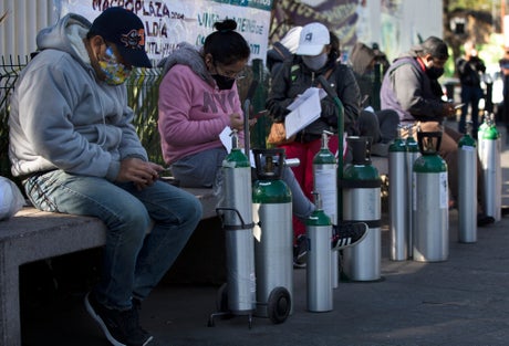 Hospitals are so full in some parts of Mexico that many families have to treat their relatives at home, and they need oxygen cylinders to do so. But federal authorities reported Wednesday that there have there have been 14 robberies of oxygen tanks at hospitals, delivery trucks or other locations across the country.