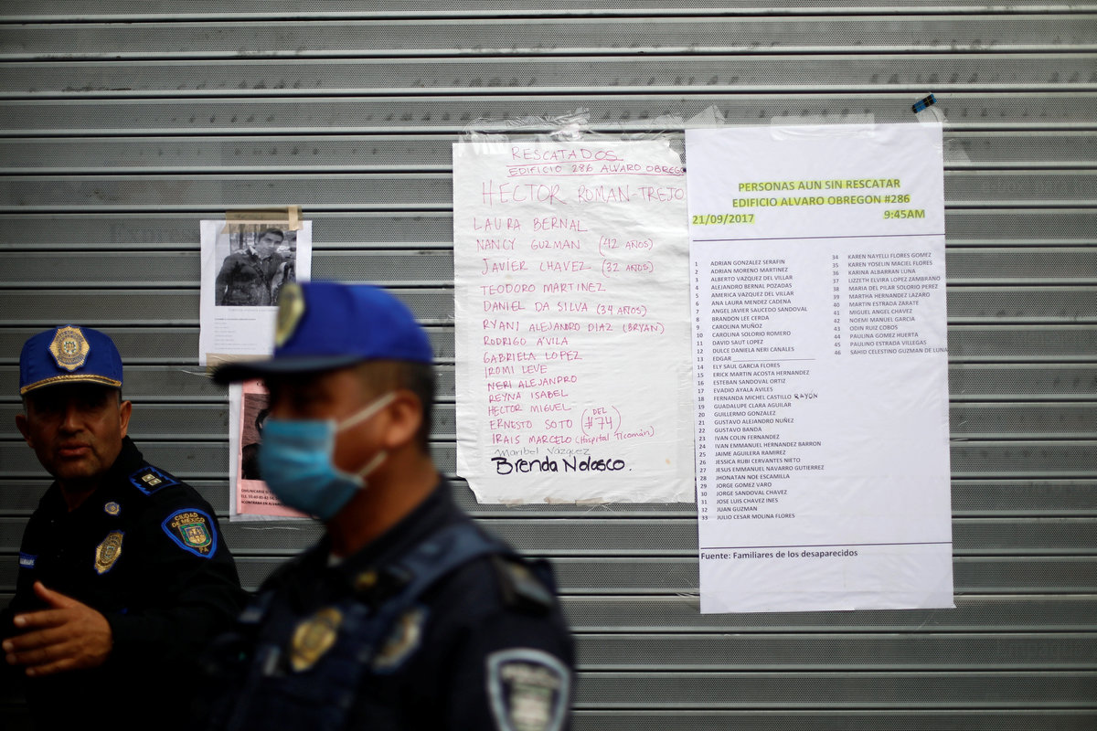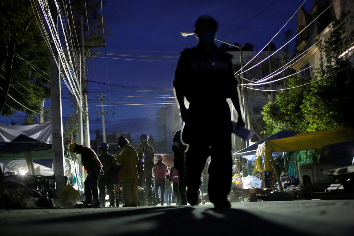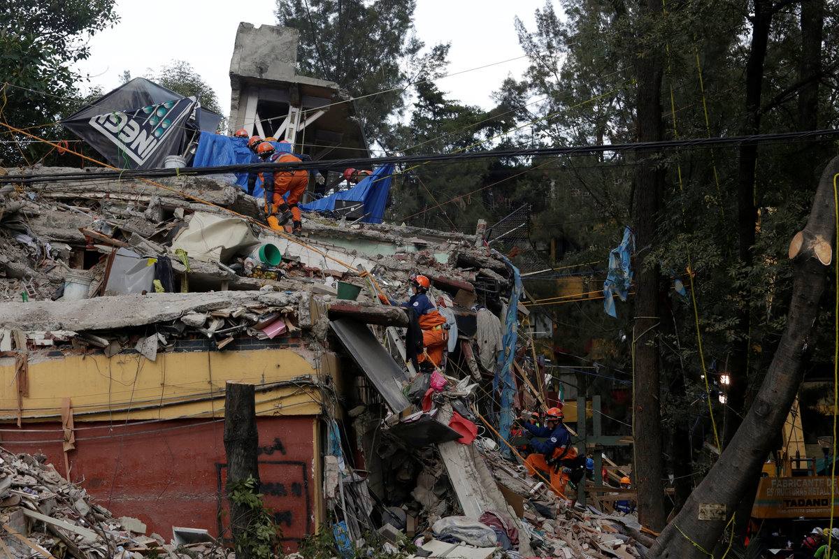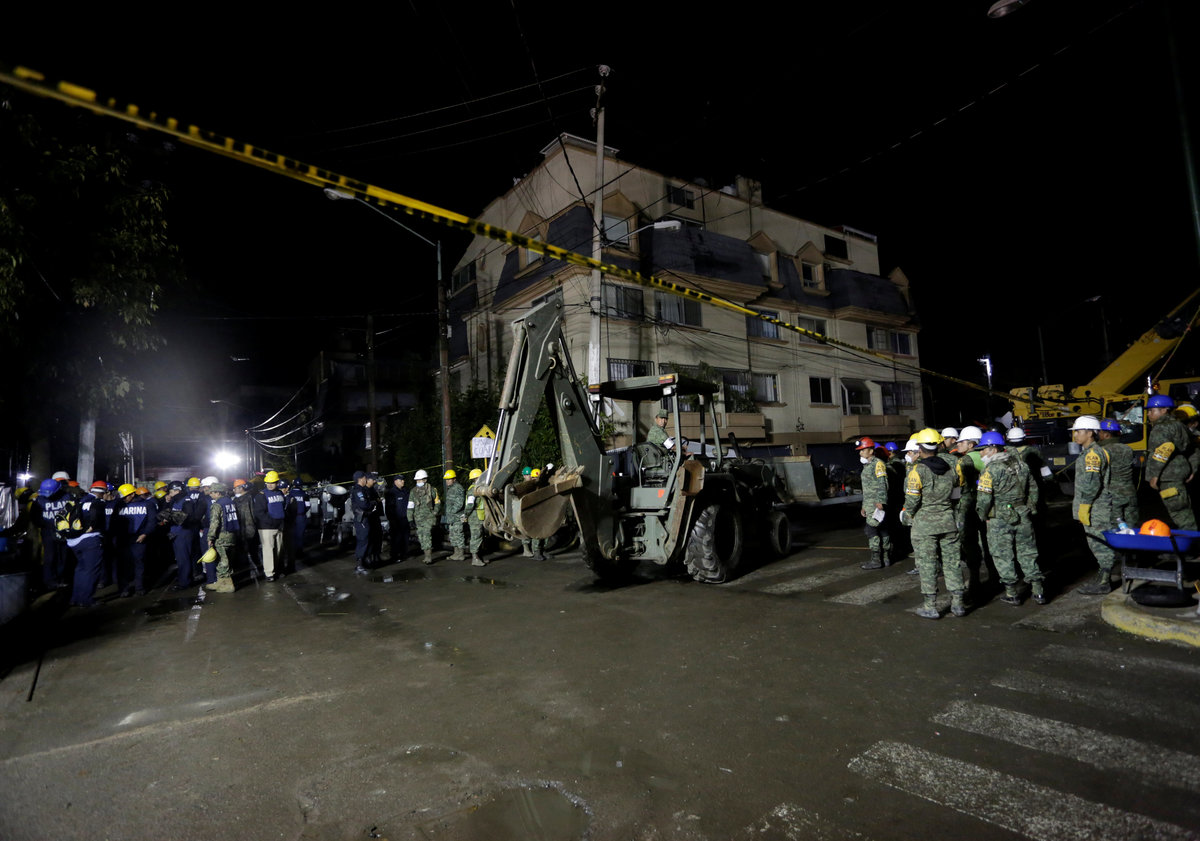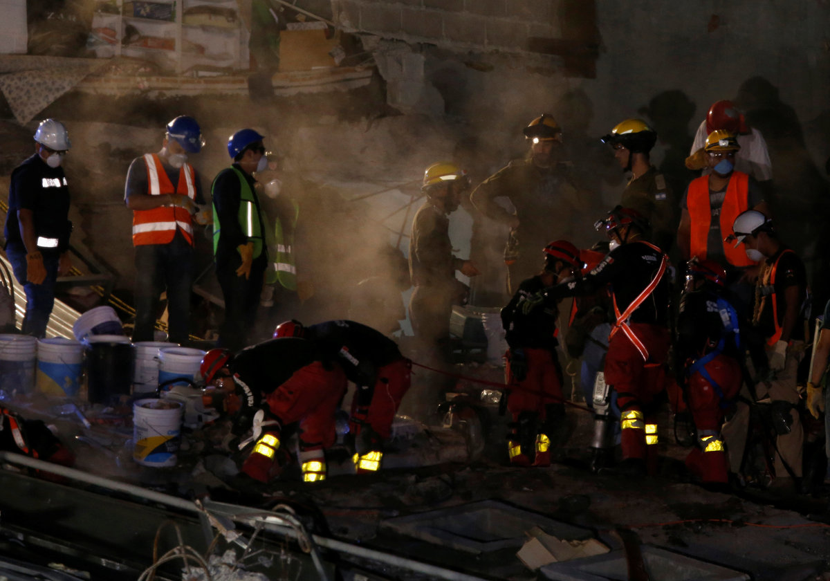 Across the city, thousands of rescue workers and special teams using sniffer dogs and heat sensors combed wreckage, while the massive outpouring of support from volunteers sparked global praise for Mexico's spirit.