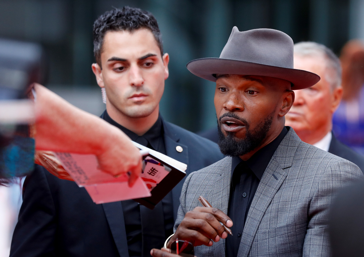 Jamie Foxx gestures as he arrives for a gala presentation of "Just Mercy" at the Toronto International Film Festival (TIFF) in Toronto, Ontario, Canada September 6, 2019. REUTERS/Mario Anzuoni