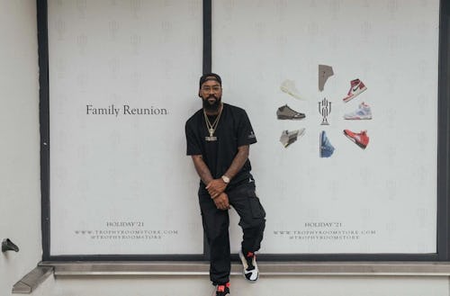 Trophy Room, the Florida sneaker boutique owned by Michael Jordan's son Marcus, may have another collaboration with Jordan Brand in the works. Marcus Jordan teased in a recent Instagram post that “we back soon,” posing in front of a new Trophy Room store covered in “Family Reunion” promotions hinting at another Jordan x Jordan partnership. A window graphic behind him also displays a grayed-out silhouette — which looks a lot like an Air Jordan 1 High — only fueling speculation more.