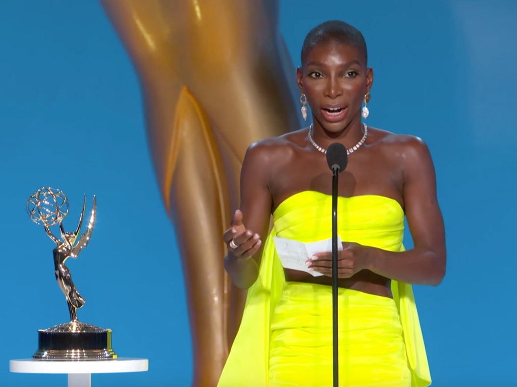 Michaela Coel spoke directly to screenplay writers while accepting the 2021 Emmy for Best Writing for the critically-acclaimed BBC/HBO limited series I May Destroy You.