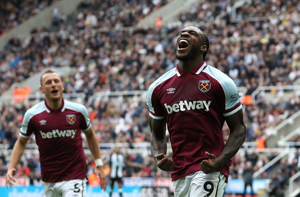 Miguel Almiron was alert at the near post to block Soucek’s header in a frenzied start, where Newcastle took the lead in the fifth minute through their new number nine’s header, continuing his fine run against the Hammers.