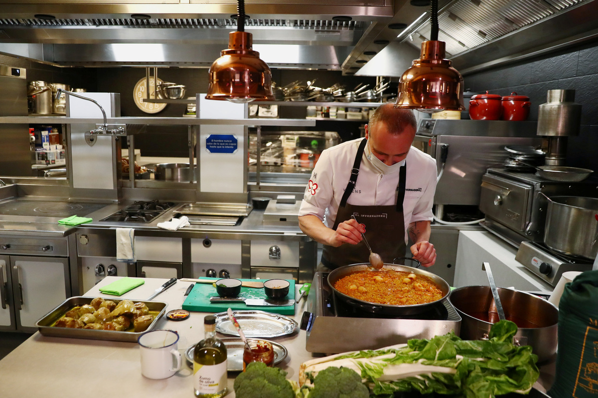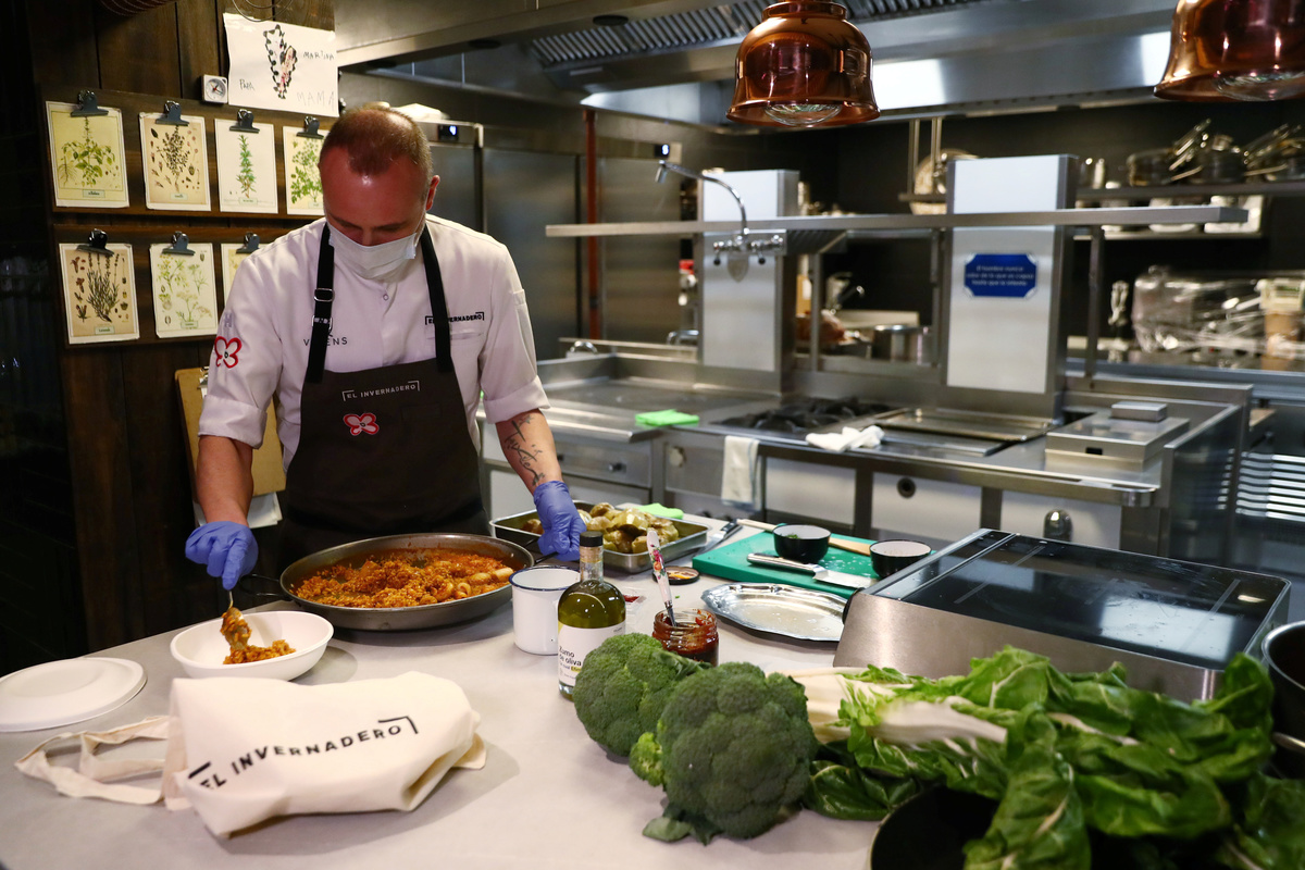 De la Calle's 26 employees in Spain are on furlough and he will take care of the whole business by himself, from cleaning vegetables to serving and packing orders through two websites named Verdelivery and Paella Corner.