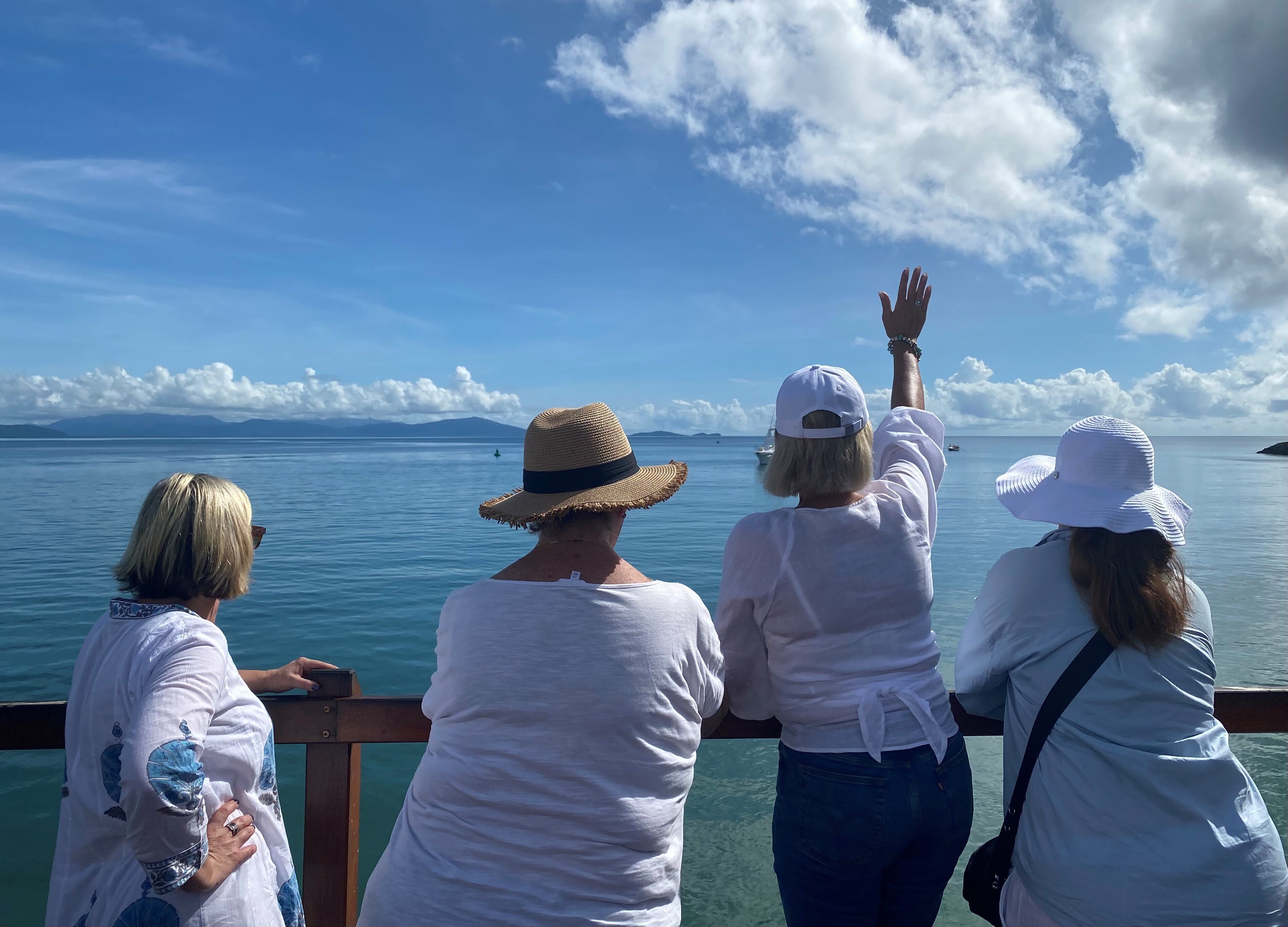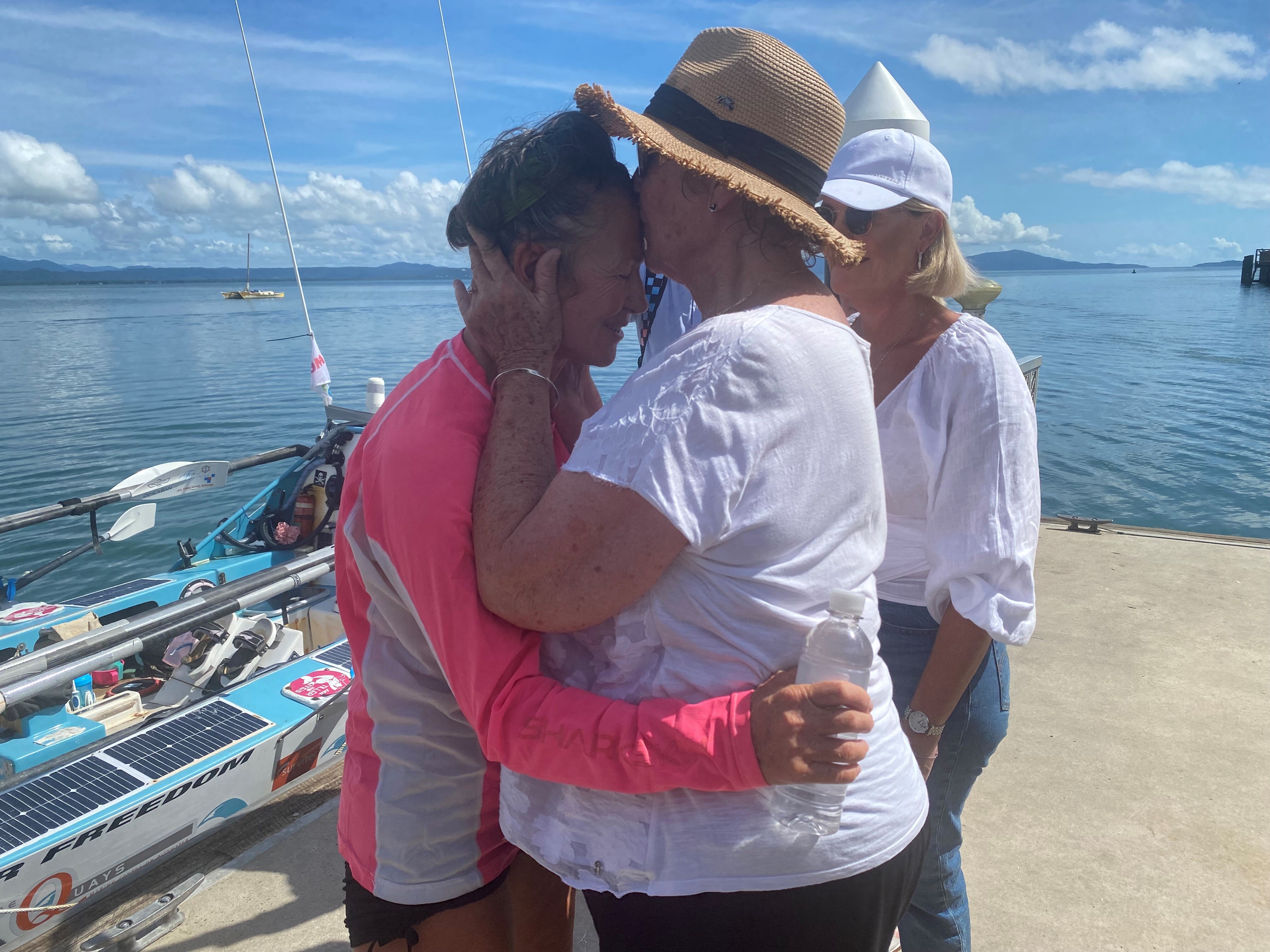 As she approached the Port Douglas jetty, Lee's friends sounded their support with air horns and music.