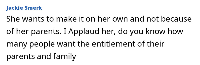 slightly skeptical reaction at first, but she understood why her 26-year-old daughter wanted to distance herself from the world-famous parents.