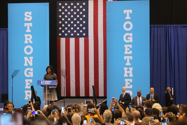 PHOENIX _ First lady Michelle Obama campaigned Thursday as the Hillary Clinton campaign closer in Arizona, speaking of the power of hope to build human connections, show empathy for the strength of inclusiveness and acknowledge the hard work of Americans who struggle to improve their lives.