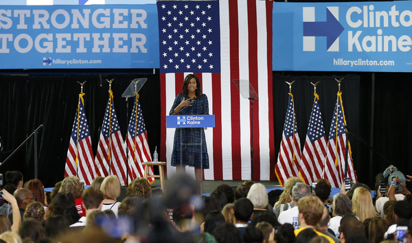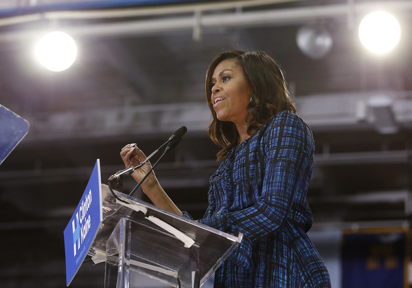 PHILADELPHIA _ First lady Michelle Obama urged young people to get out the vote for Hillary Clinton during a speech Wednesday at La Salle University in Philadelphia, telling them their votes could be crucial for the Democratic presidential nominee.