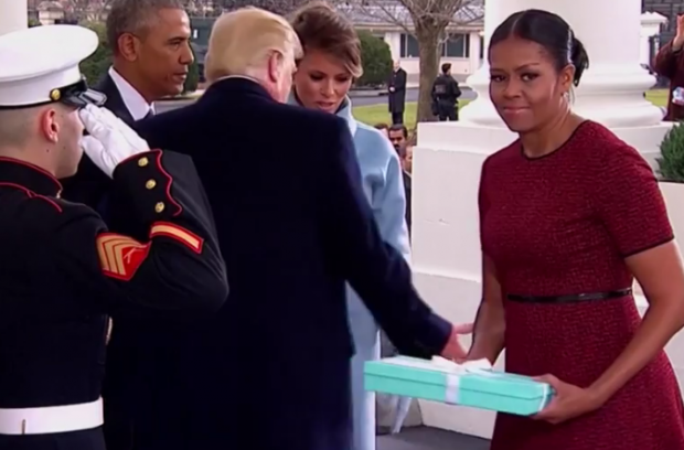 As the Obamas greeted Donald Trump and his wife to the White House at his inauguration in January last year, the incoming First Lady handed Ms Obama a surprise gift.