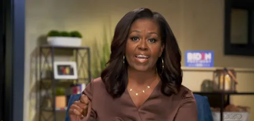 The necklace worn by Michelle Obama while addressing the Democratic National Convention — a fine gold chain spelling out the word VOTE in spaced, sans serif letters — has gone viral.