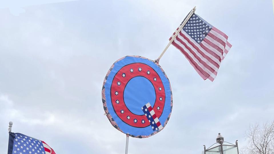 Michigan representative wears 'Q' button to election audit rally (The Detroit News)