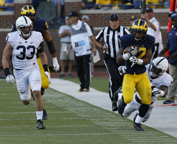 Jabrill Peppers' impressive 53-yard punt return, stumbling at the end and softened by a U-M penalty, allowed U-M to start its first drive on the Penn State 24 and ended with fullback Khalid Hill scoring.