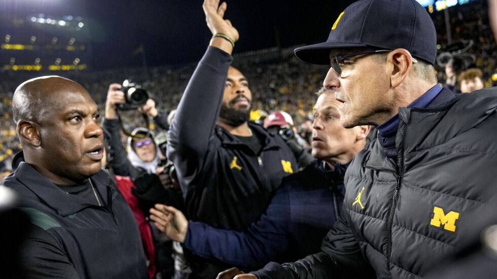 ANN ARBOR, Mich. — Michigan State President Samuel Stanley called actions by Spartans football players involved in a postgame melee with members of rival Michigan’s team “unacceptable” and said Sunday those involved would be held responsible by coach Mel Tucker.