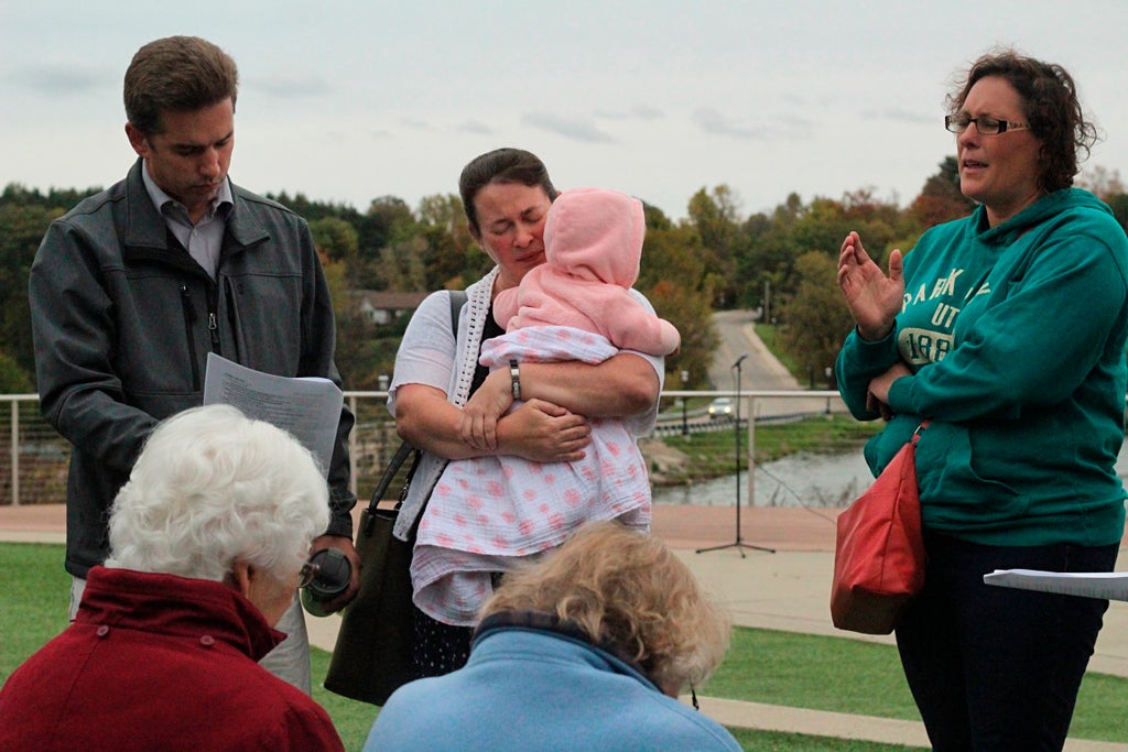 Those at Sunday’s vigil in a town park sang and prayed with pastors from several area churches for the safety of the missionaries.