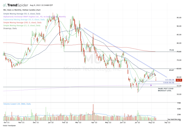 On the upside, the bulls need to see Micron get back above its three key moving averages: the 10-day, 21-day and 50-day.