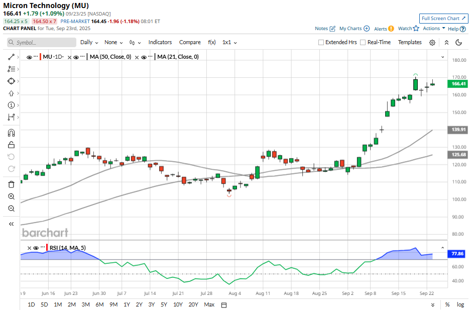 Shares of Micron Technology (MU) have gained considerably in value, rising about 97% year-to-date. This significant growth in MU stock is powered by solid demand for its cutting-edge memory chips and storage solutions.