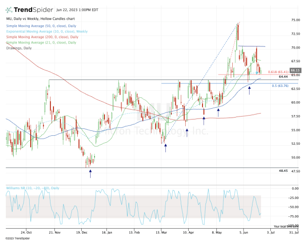 On the upside, longs will want to see Micron stock reclaim the 21-day moving average and clear the $67.50 to $68 area. That opens the door back to recent resistance at $70.50.