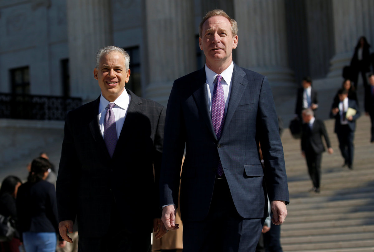 WASHINGTON (Reuters) - Supreme Court justices on Tuesday wrestled with Microsoft Corp's dispute with the U.S. Justice Department over whether prosecutors can force technology companies to hand over data stored overseas, with some signaling support for the government and others urging Congress to pass a law to resolve the issue.