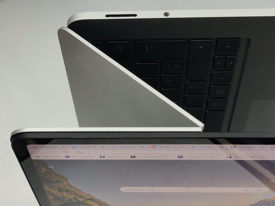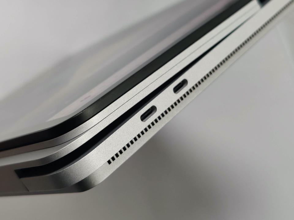 There’s also a distinct lack of ports. A headphone jack and Microsoft’s own Surface Connect port can be found on the right-hand side of the machine, and two Thunderbolt/USB-C ports on the left. For a premium laptop designed for power users, this feels underwhelming at best. I also, inexplicably, missed having volume and power keys on the edges of the device. That’s something you rarely see on laptops, but it is on the Surface Pro line and my muscle memory was expecting it, especially in presentation mode.