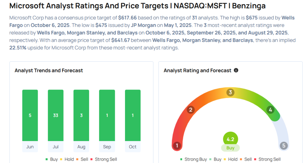 - Wells Fargo raised Microsoft Corporation (NASDAQ:MSFT) price target from $650 to $675. Wells Fargo analyst Michael Turrin maintained an Overweight rating. Microsoft shares closed at $517.35 on Friday. See how other analysts view this stock.